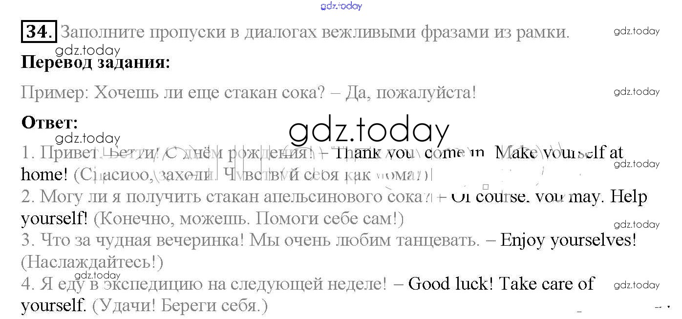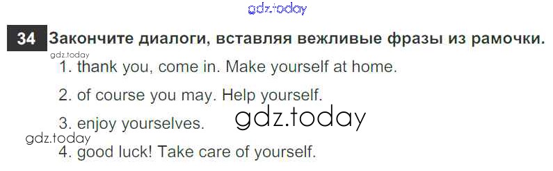 На страницах сайта gdz.today вы найдете учебный и вспомогательный материал, направленный на улучшения знаний школьной программы. ГДЗ - онлайн мир знаний Exercises Решение к Unit 3 34 Рабочей тетради по Английскому языку для 6 класса Биболетова, Денисенко Дрофа Enjoy English 2019