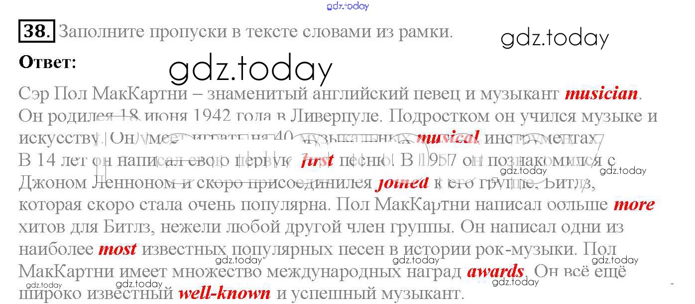 На страницах сайта gdz.today вы найдете учебный и вспомогательный материал, направленный на улучшения знаний школьной программы. ГДЗ - онлайн мир знаний Exercises Решение к Unit 3 38 Рабочей тетради по Английскому языку для 6 класса Биболетова, Денисенко Дрофа Enjoy English 2019
