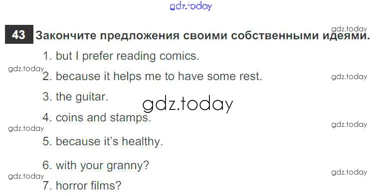 На страницах сайта gdz.today вы найдете учебный и вспомогательный материал, направленный на улучшения знаний школьной программы. ГДЗ - онлайн мир знаний Exercises Решение к Unit 3 43 Рабочей тетради по Английскому языку для 6 класса Биболетова, Денисенко Дрофа Enjoy English 2019