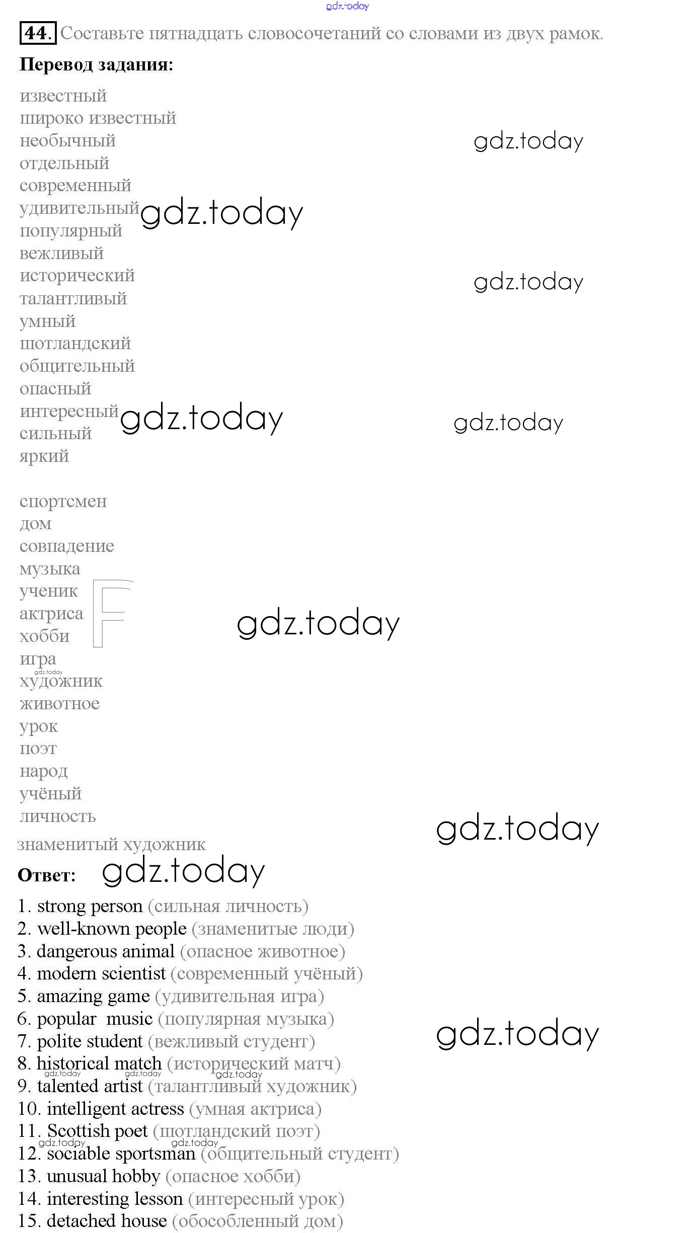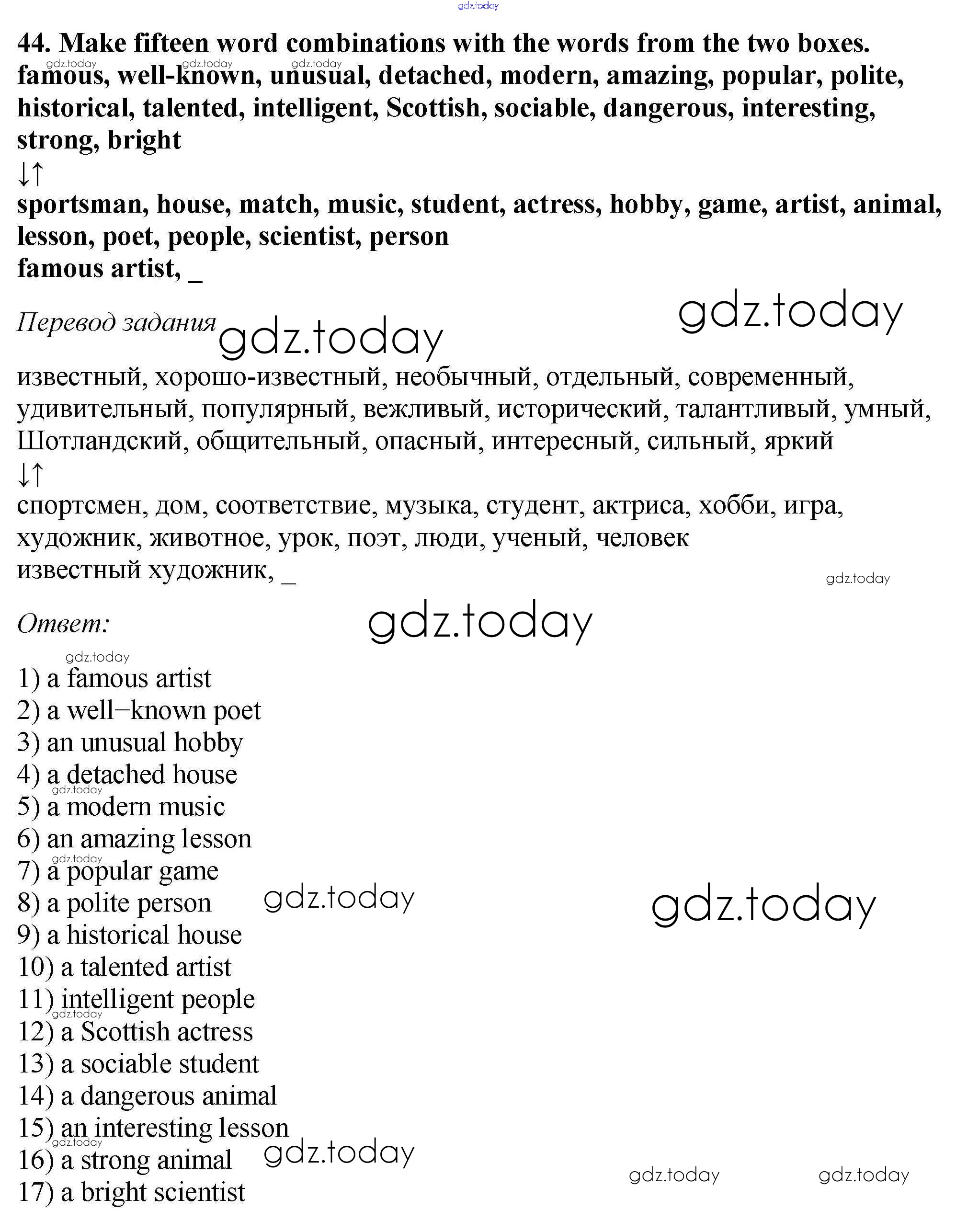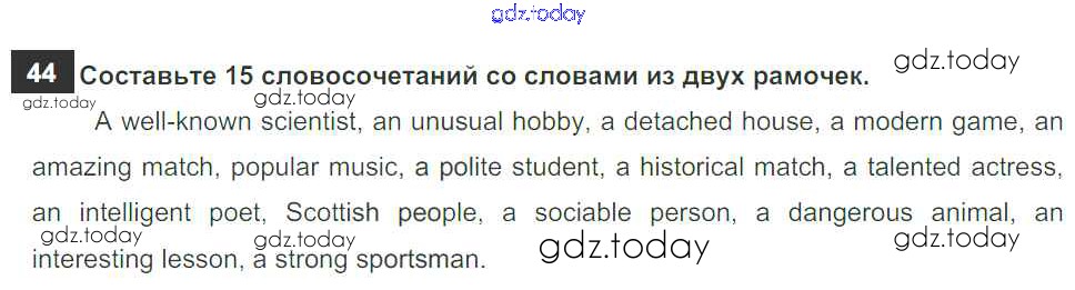 На страницах сайта gdz.today вы найдете учебный и вспомогательный материал, направленный на улучшения знаний школьной программы. ГДЗ - онлайн мир знаний Exercises Решение к Unit 3 44 Рабочей тетради по Английскому языку для 6 класса Биболетова, Денисенко Дрофа Enjoy English 2019