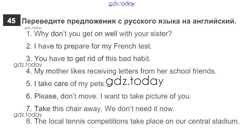 На страницах сайта gdz.today вы найдете учебный и вспомогательный материал, направленный на улучшения знаний школьной программы. ГДЗ - онлайн мир знаний Exercises Решение к Unit 3 45 Рабочей тетради по Английскому языку для 6 класса Биболетова, Денисенко Дрофа Enjoy English 2019
