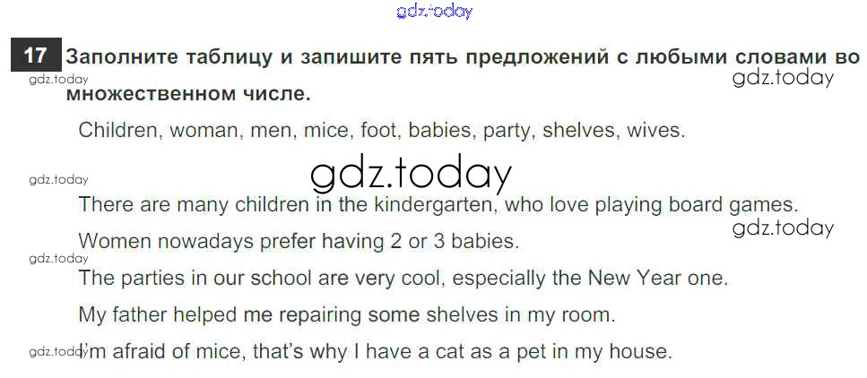 На страницах сайта gdz.today вы найдете учебный и вспомогательный материал, направленный на улучшения знаний школьной программы. ГДЗ - онлайн мир знаний Exercises Решение к Unit 4 17 Рабочей тетради по Английскому языку для 6 класса Биболетова, Денисенко Дрофа Enjoy English 2019