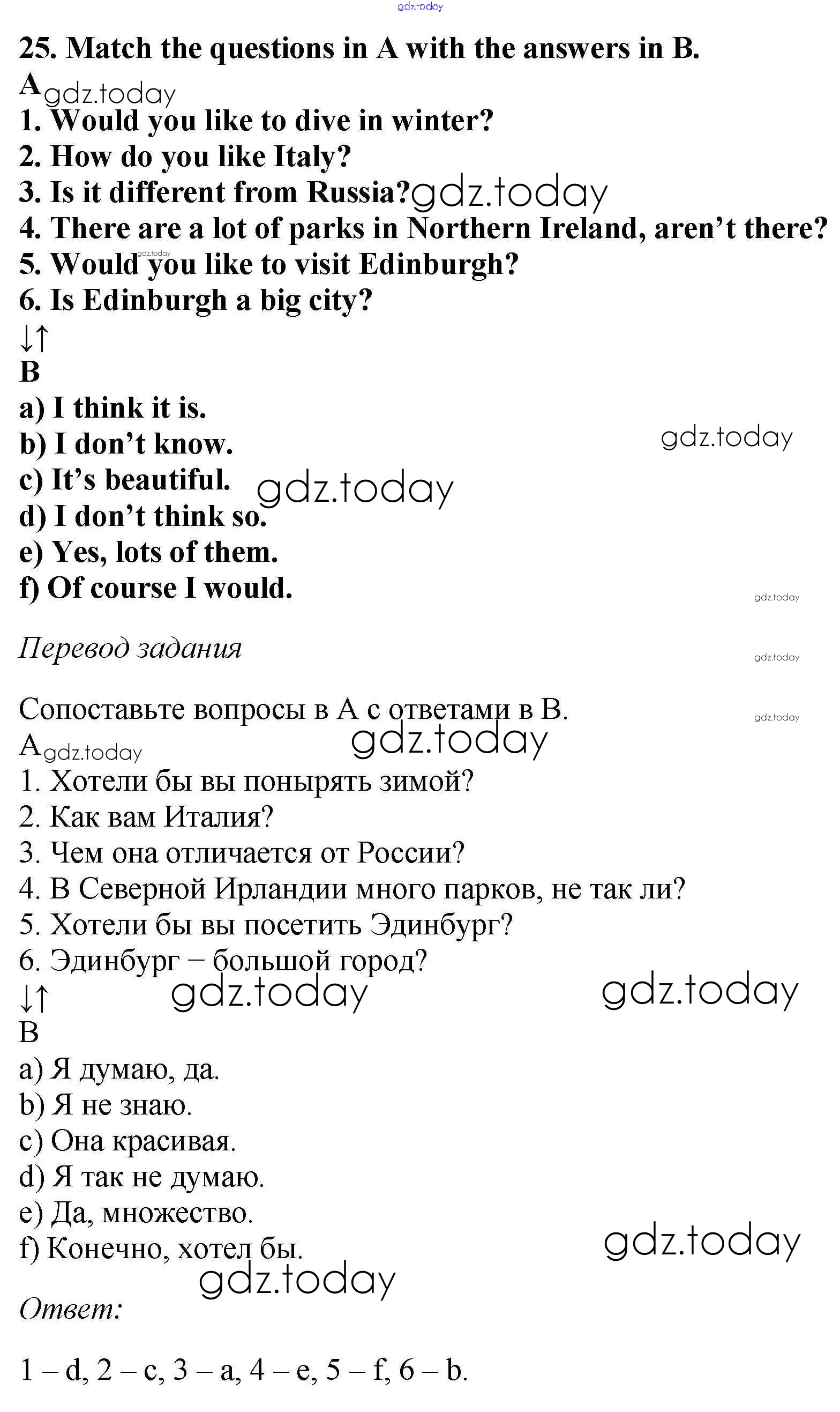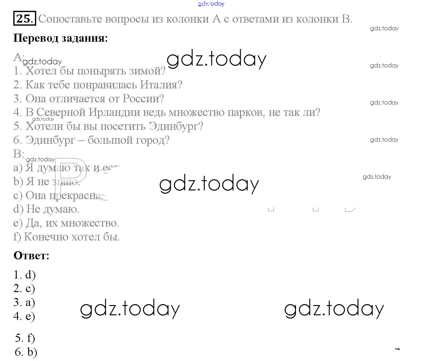 На страницах сайта gdz.today вы найдете учебный и вспомогательный материал, направленный на улучшения знаний школьной программы. ГДЗ - онлайн мир знаний Exercises Решение к Unit 4 25 Рабочей тетради по Английскому языку для 6 класса Биболетова, Денисенко Дрофа Enjoy English 2019