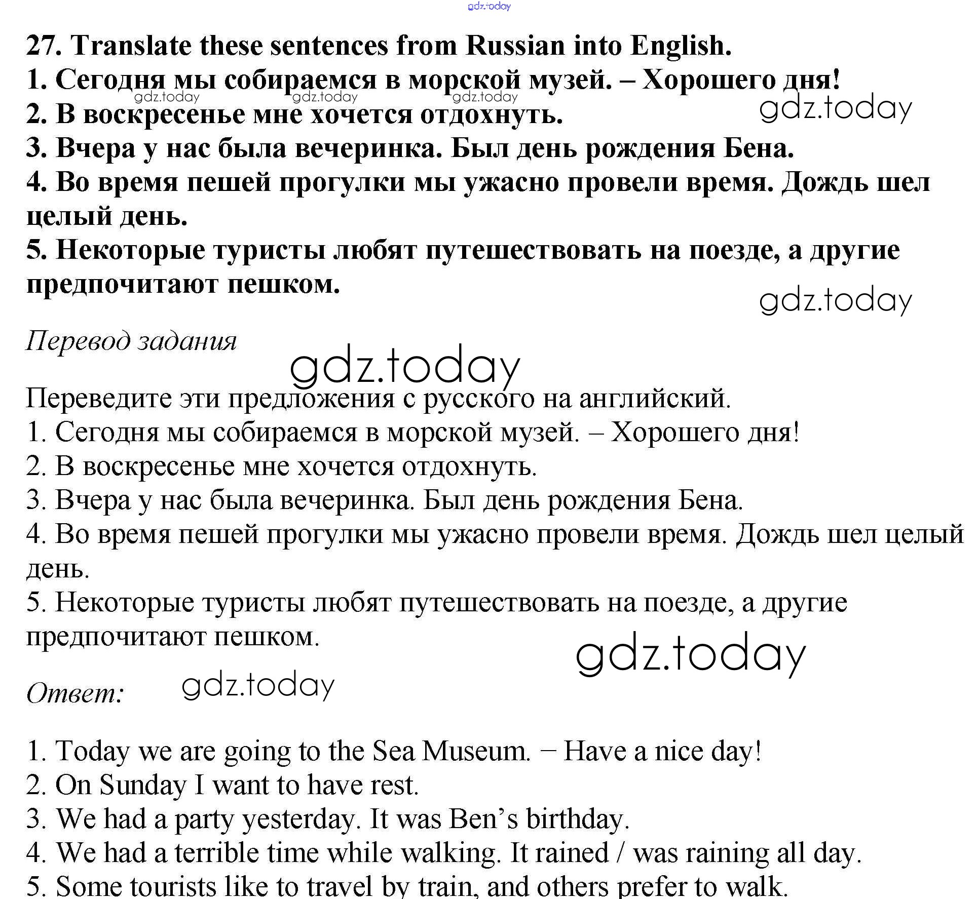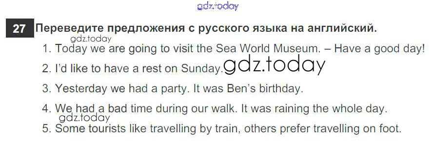 На страницах сайта gdz.today вы найдете учебный и вспомогательный материал, направленный на улучшения знаний школьной программы. ГДЗ - онлайн мир знаний Exercises Решение к Unit 4 27 Рабочей тетради по Английскому языку для 6 класса Биболетова, Денисенко Дрофа Enjoy English 2019