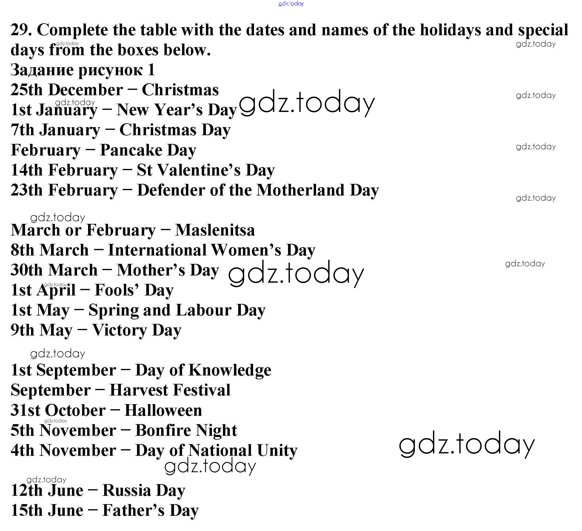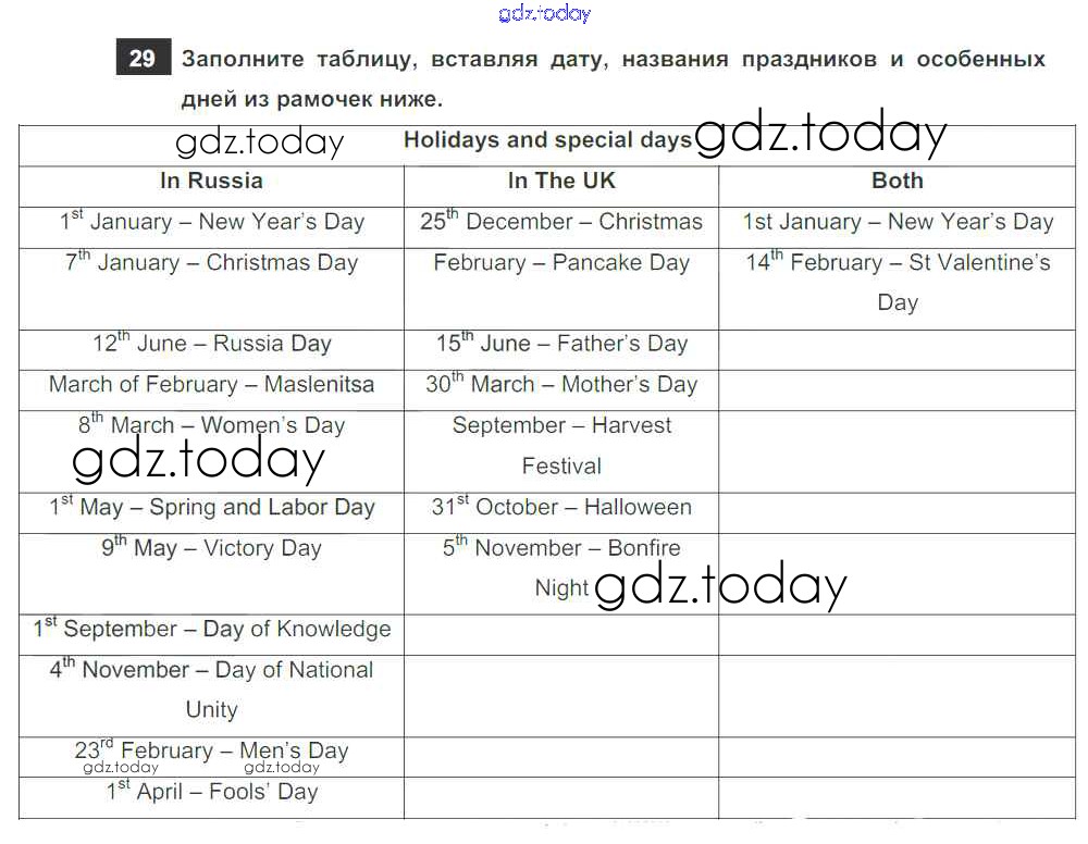 На страницах сайта gdz.today вы найдете учебный и вспомогательный материал, направленный на улучшения знаний школьной программы. ГДЗ - онлайн мир знаний Exercises Решение к Unit 4 29 Рабочей тетради по Английскому языку для 6 класса Биболетова, Денисенко Дрофа Enjoy English 2019