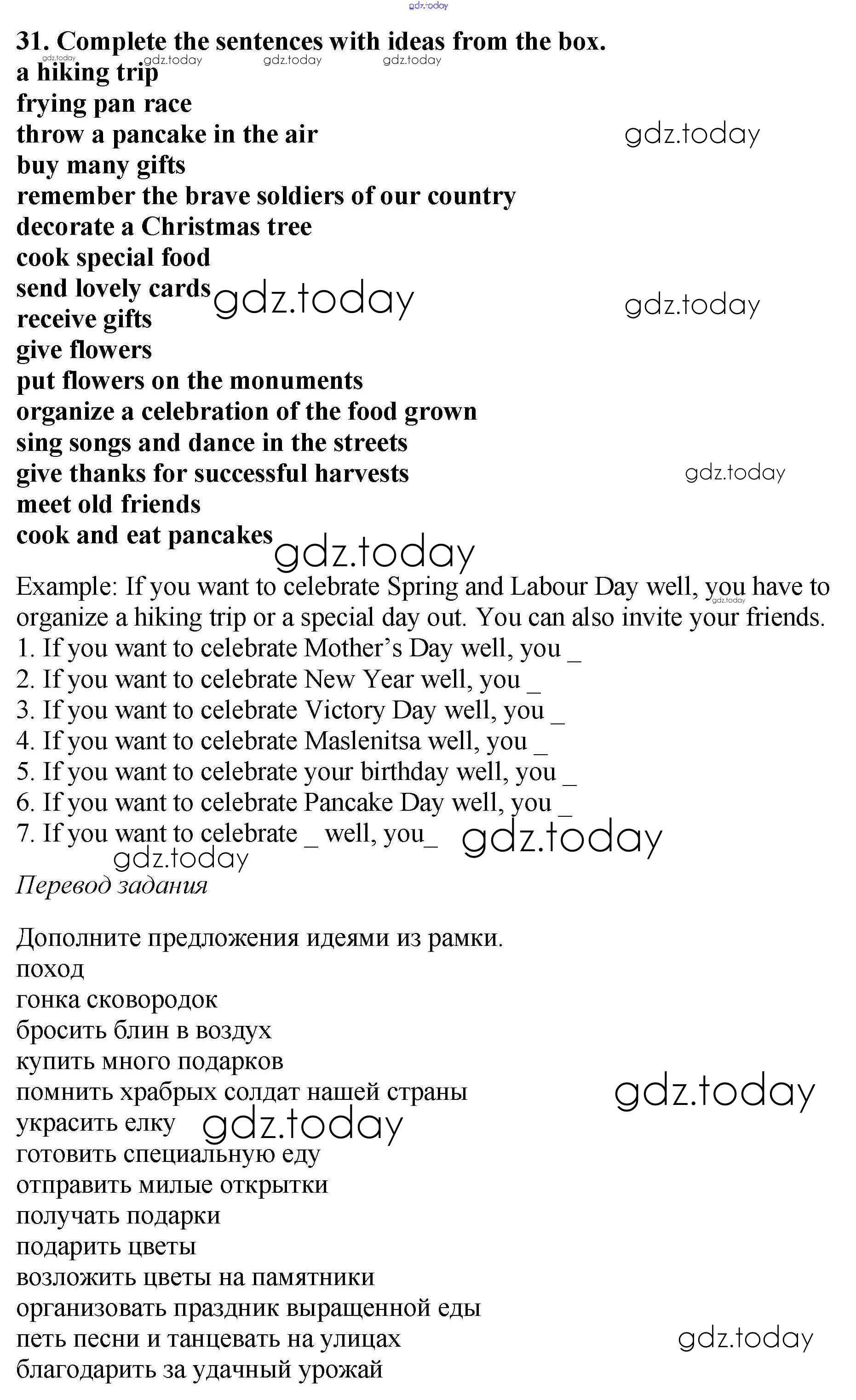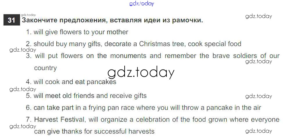 На страницах сайта gdz.today вы найдете учебный и вспомогательный материал, направленный на улучшения знаний школьной программы. ГДЗ - онлайн мир знаний Exercises Решение к Unit 4 31 Рабочей тетради по Английскому языку для 6 класса Биболетова, Денисенко Дрофа Enjoy English 2019