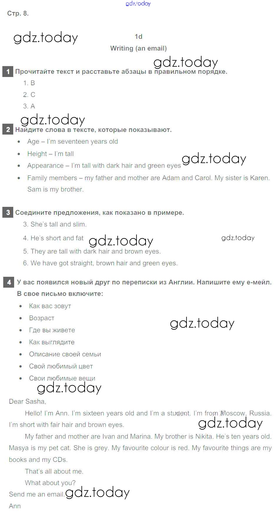Ответы к Решение. Страницы 8 Рабочей тетради по Английскому языку для 6 класса Ваулина, Дули Просвещение Spotlight 2016
