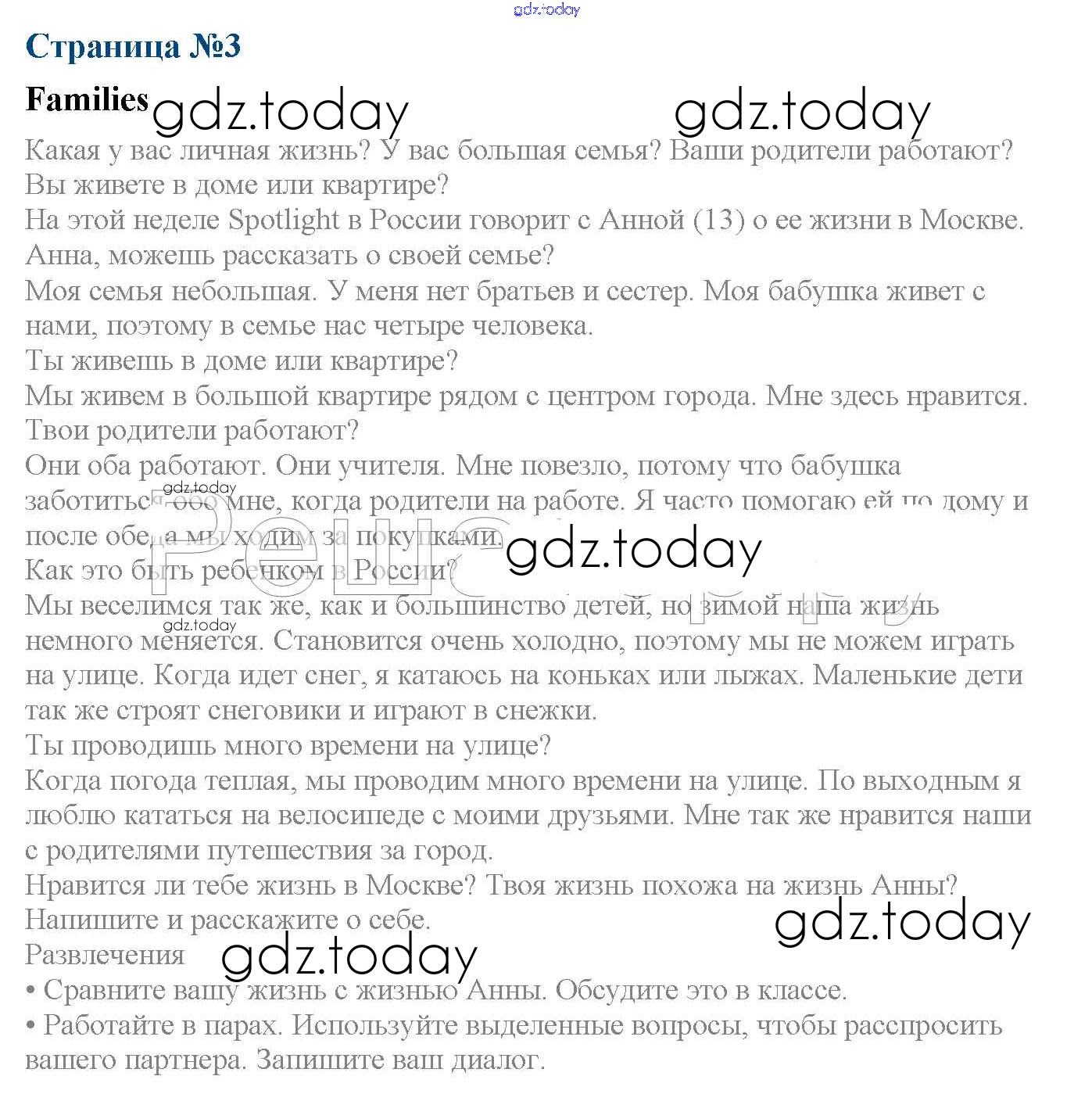 На страницах сайта gdz.today вы найдете учебный и вспомогательный материал, направленный на улучшения знаний школьной программы. ГДЗ - онлайн мир знаний Решение. Spotlight in Russia 3 Рабочей тетради по Английскому языку для 6 класса Ваулина, Дули Просвещение Spotlight 2016