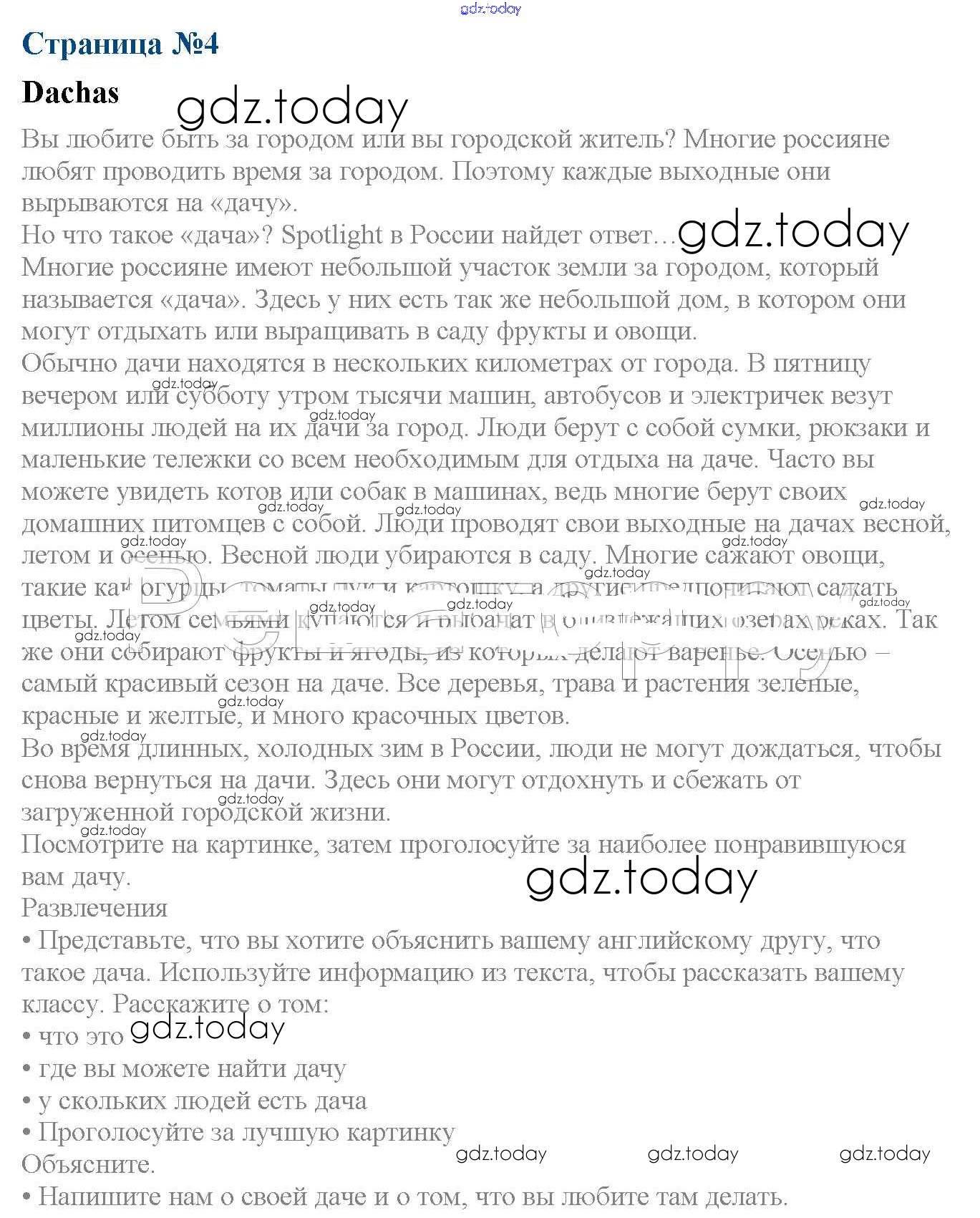 На страницах сайта gdz.today вы найдете учебный и вспомогательный материал, направленный на улучшения знаний школьной программы. ГДЗ - онлайн мир знаний Решение. Spotlight in Russia 4 Рабочей тетради по Английскому языку для 6 класса Ваулина, Дули Просвещение Spotlight 2016