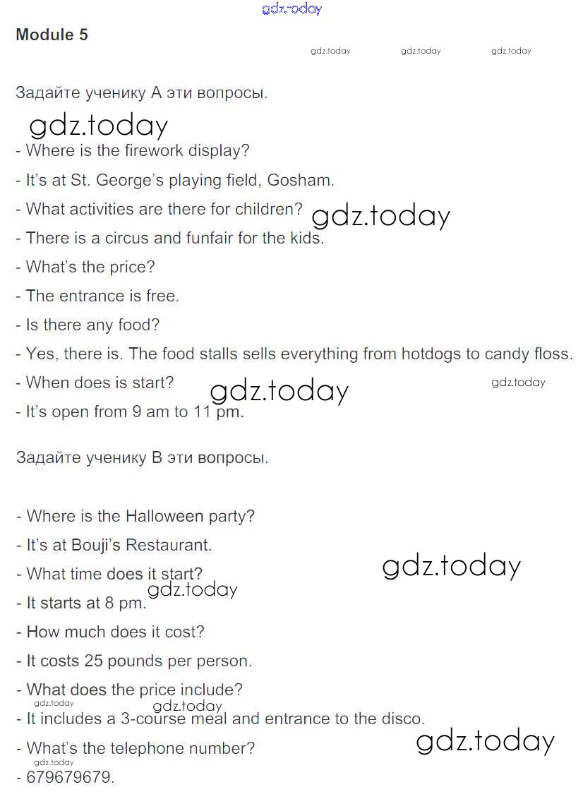 На страницах сайта gdz.today вы найдете учебный и вспомогательный материал, направленный на улучшения знаний школьной программы. ГДЗ - онлайн мир знаний Решение. Работа в парах. Модули 5 Рабочей тетради по Английскому языку для 6 класса Ваулина, Дули Просвещение Spotlight 2016
