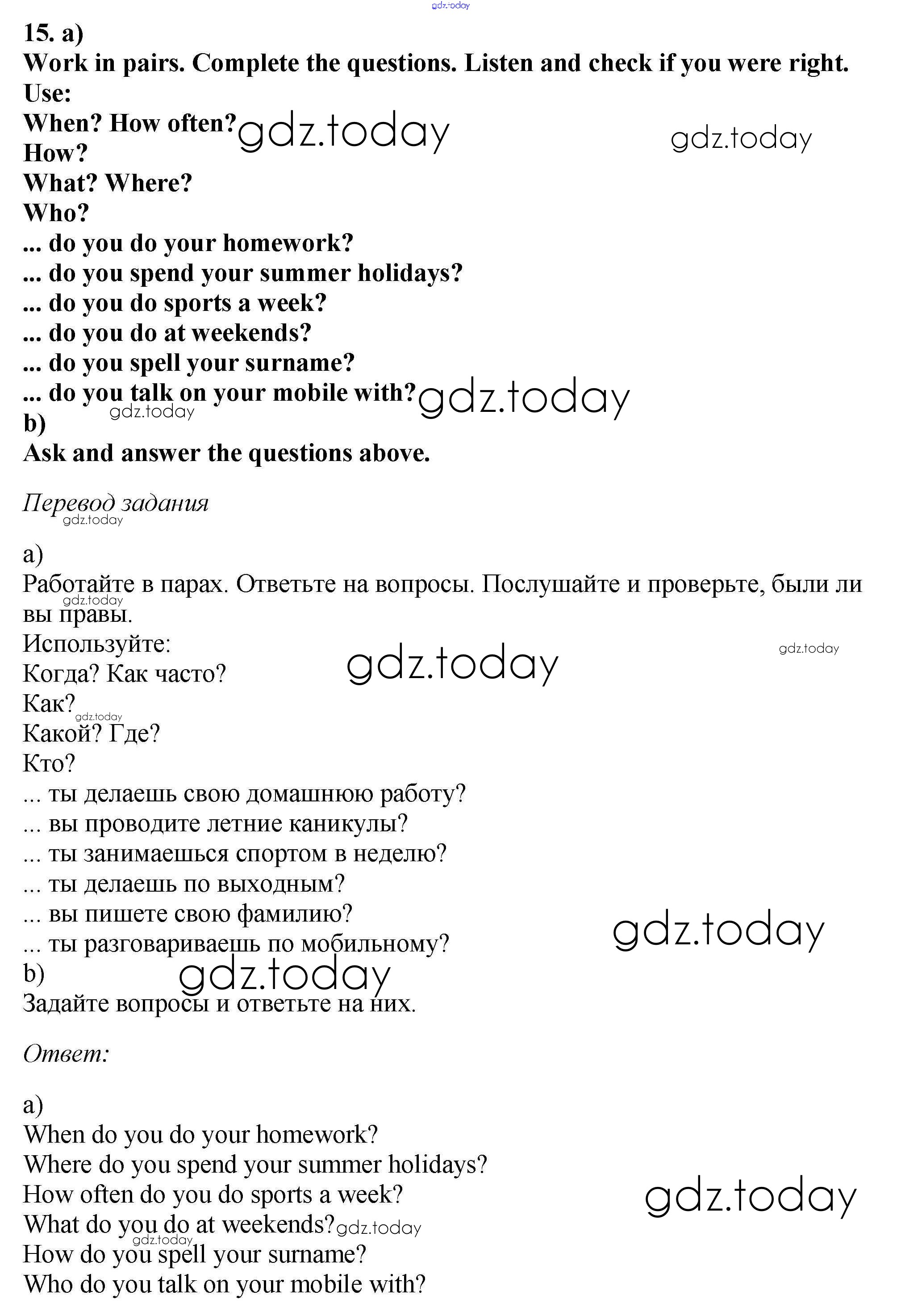 На страницах сайта gdz.today вы найдете учебный и вспомогательный материал, направленный на улучшения знаний школьной программы. ГДЗ - онлайн мир знаний Exercises Unit 1 15 Учебнику по Английскому языку для 6 класса Биболетова, Денисенко Титул, Дрофа Enjoy English 2015, 2019
