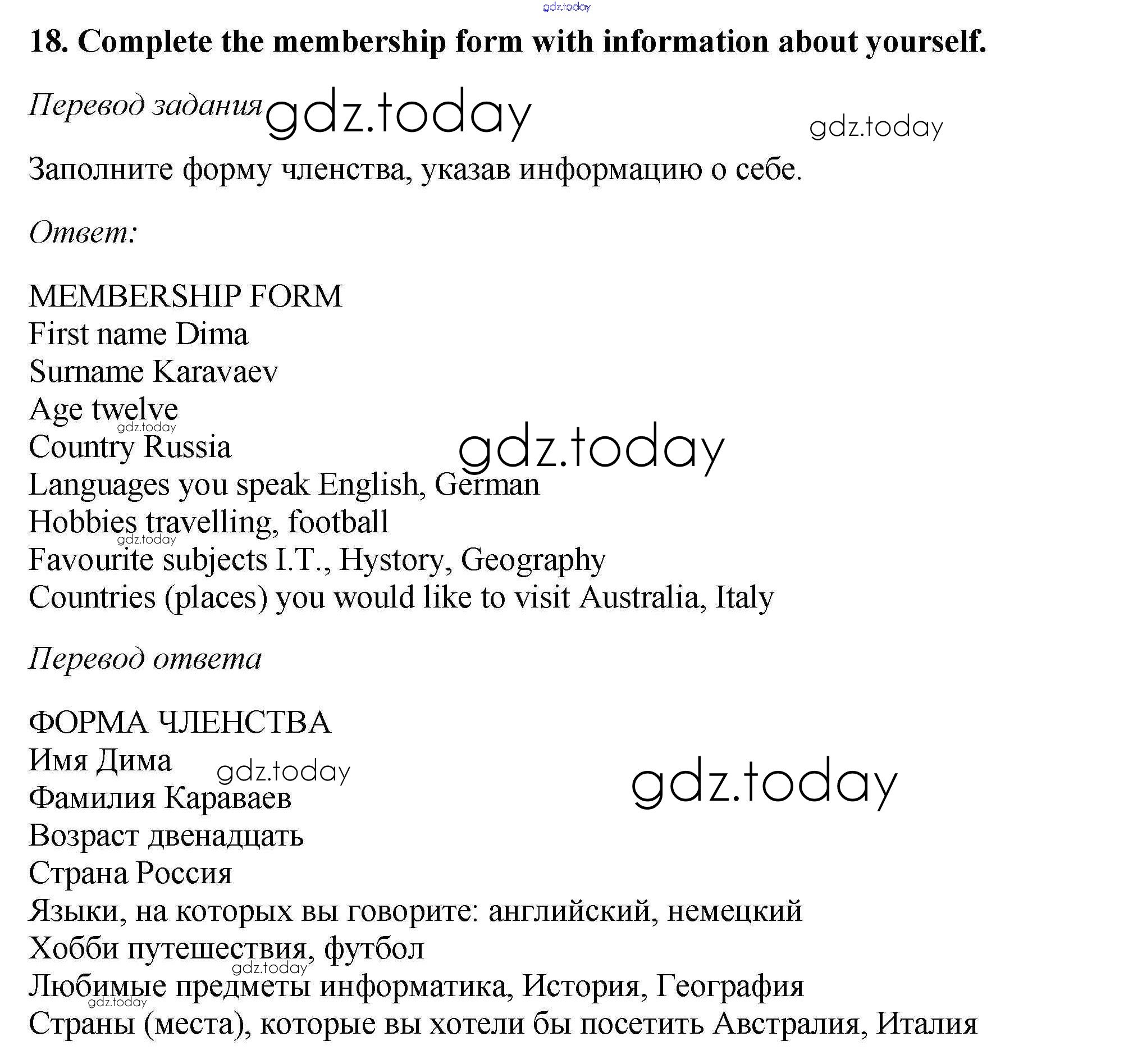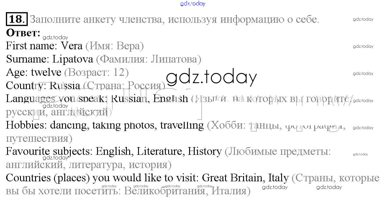 На страницах сайта gdz.today вы найдете учебный и вспомогательный материал, направленный на улучшения знаний школьной программы. ГДЗ - онлайн мир знаний Exercises Unit 1 18 Учебнику по Английскому языку для 6 класса Биболетова, Денисенко Титул, Дрофа Enjoy English 2015, 2019