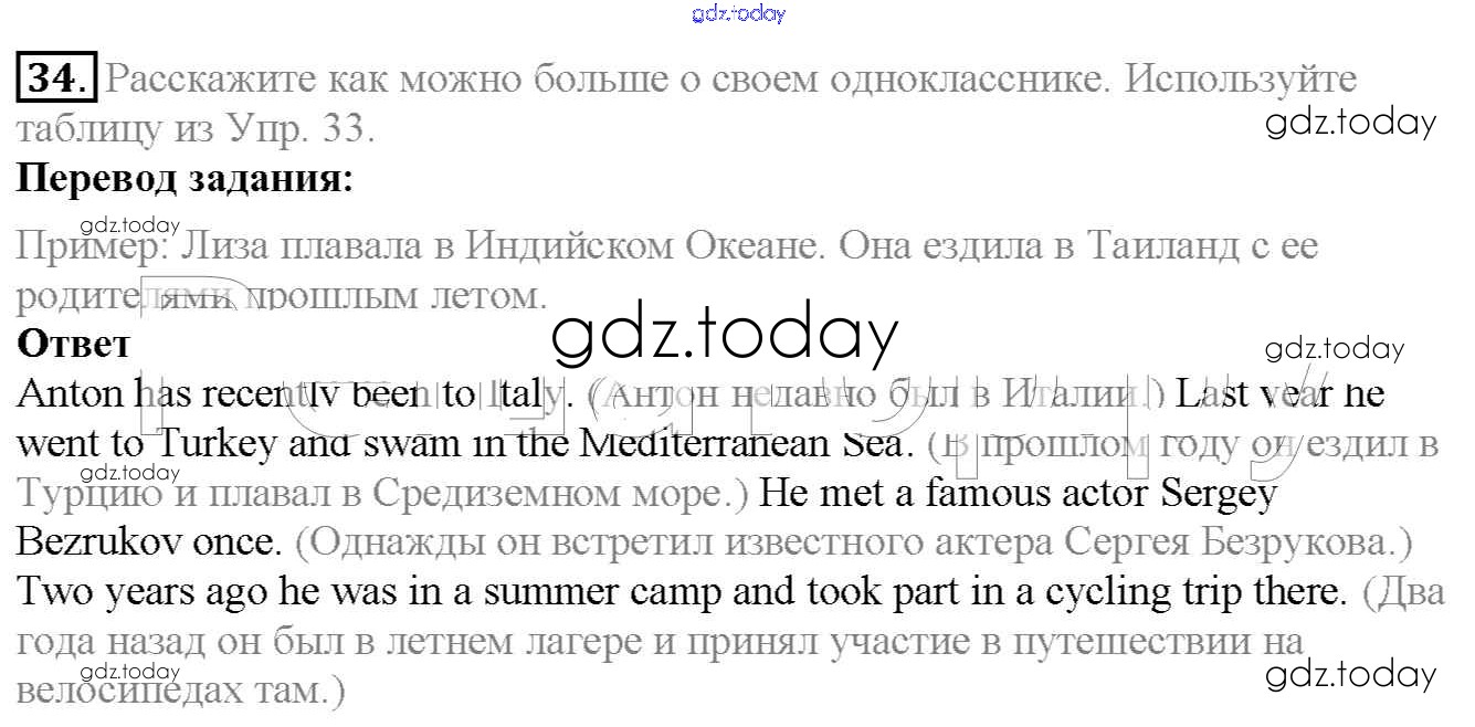 На страницах сайта gdz.today вы найдете учебный и вспомогательный материал, направленный на улучшения знаний школьной программы. ГДЗ - онлайн мир знаний Exercises Unit 1 34 Учебнику по Английскому языку для 6 класса Биболетова, Денисенко Титул, Дрофа Enjoy English 2015, 2019