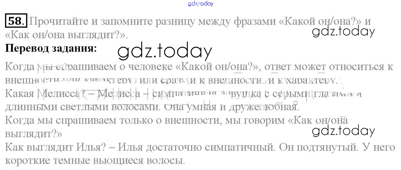 На страницах сайта gdz.today вы найдете учебный и вспомогательный материал, направленный на улучшения знаний школьной программы. ГДЗ - онлайн мир знаний Exercises Unit 1 58 Учебнику по Английскому языку для 6 класса Биболетова, Денисенко Титул, Дрофа Enjoy English 2015, 2019