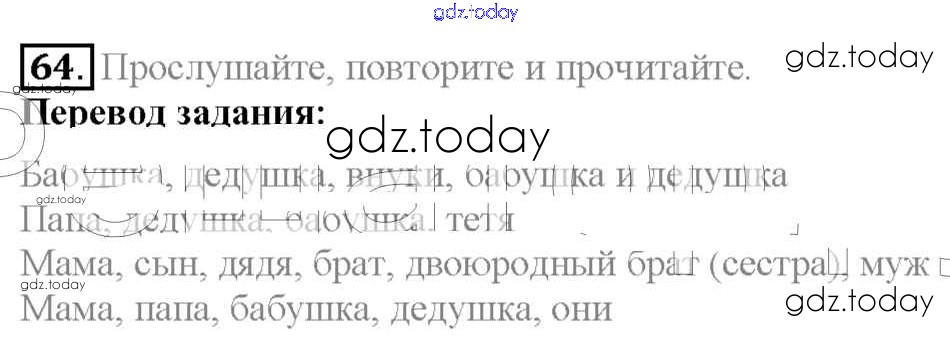 На страницах сайта gdz.today вы найдете учебный и вспомогательный материал, направленный на улучшения знаний школьной программы. ГДЗ - онлайн мир знаний Exercises Unit 1 64 Учебнику по Английскому языку для 6 класса Биболетова, Денисенко Титул, Дрофа Enjoy English 2015, 2019