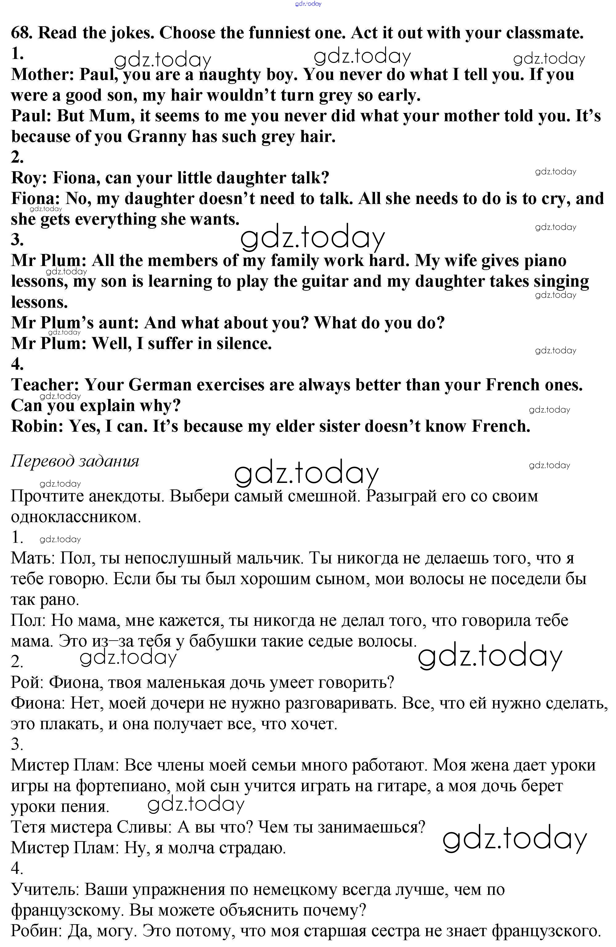 На страницах сайта gdz.today вы найдете учебный и вспомогательный материал, направленный на улучшения знаний школьной программы. ГДЗ - онлайн мир знаний Exercises Unit 1 68 Учебнику по Английскому языку для 6 класса Биболетова, Денисенко Титул, Дрофа Enjoy English 2015, 2019