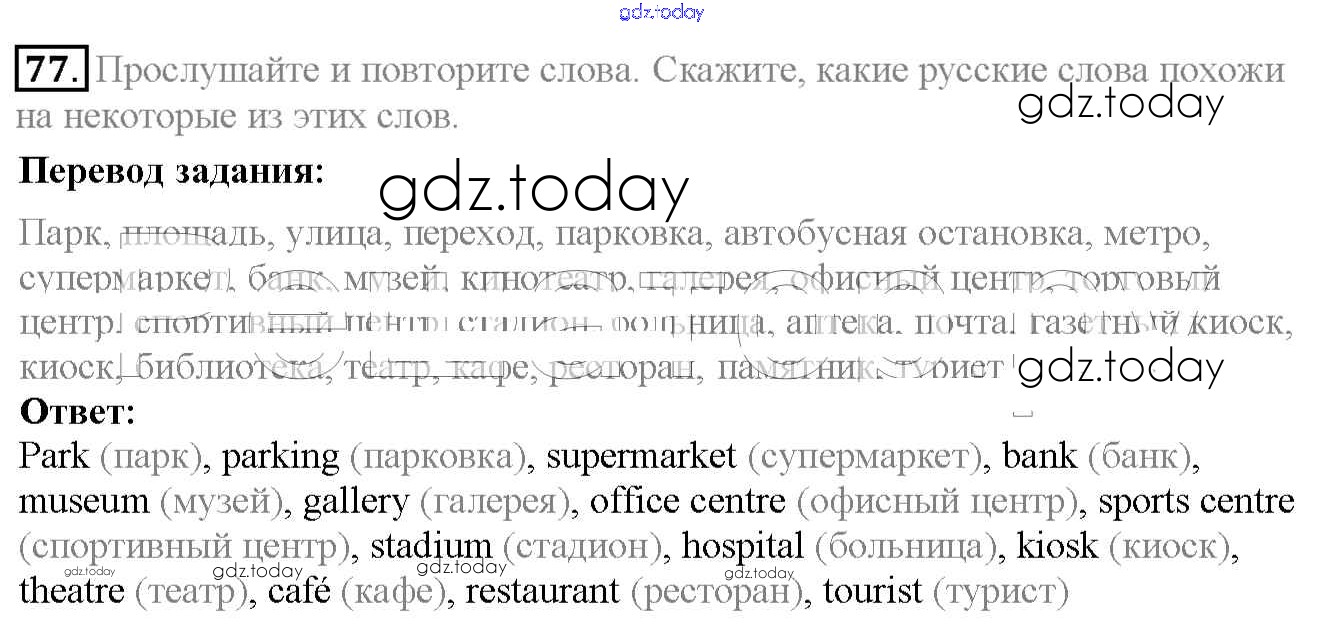 На страницах сайта gdz.today вы найдете учебный и вспомогательный материал, направленный на улучшения знаний школьной программы. ГДЗ - онлайн мир знаний Exercises Unit 1 77 Учебнику по Английскому языку для 6 класса Биболетова, Денисенко Титул, Дрофа Enjoy English 2015, 2019