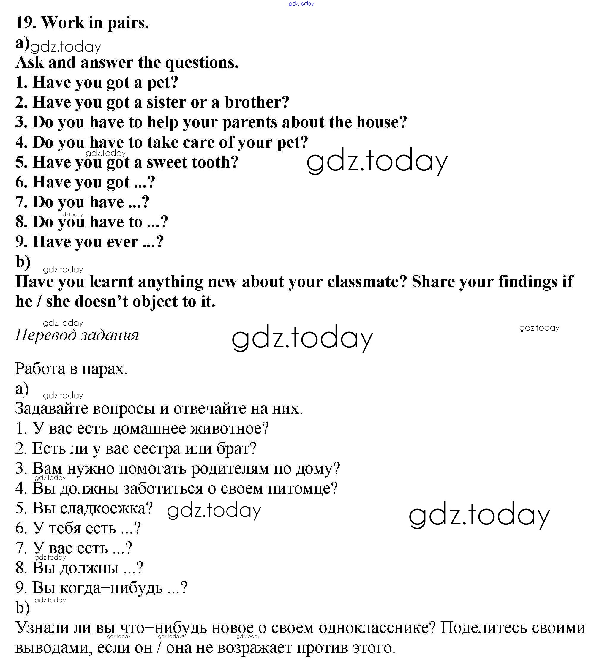На страницах сайта gdz.today вы найдете учебный и вспомогательный материал, направленный на улучшения знаний школьной программы. ГДЗ - онлайн мир знаний Exercises Unit 2 19 Учебнику по Английскому языку для 6 класса Биболетова, Денисенко Титул, Дрофа Enjoy English 2015, 2019