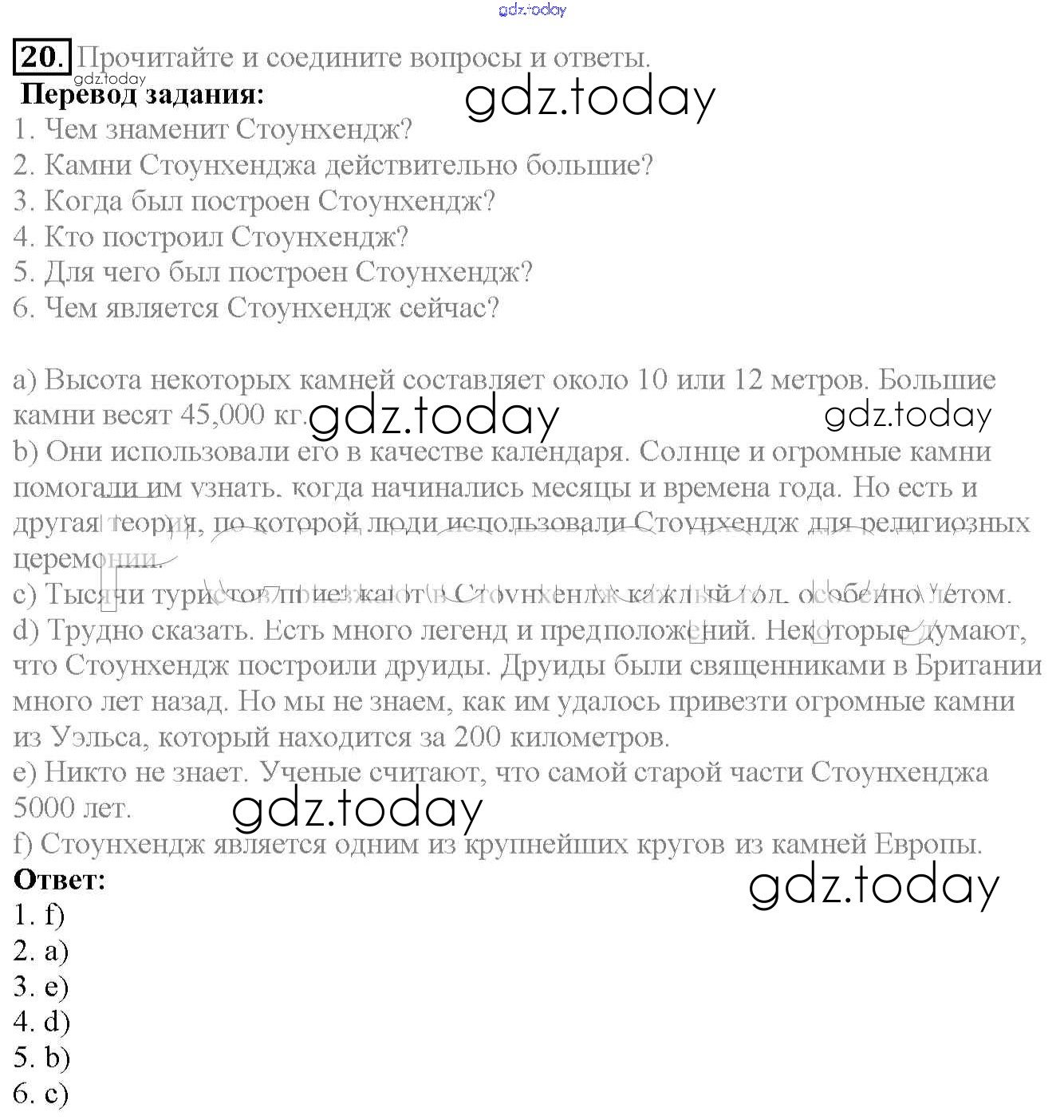 На страницах сайта gdz.today вы найдете учебный и вспомогательный материал, направленный на улучшения знаний школьной программы. ГДЗ - онлайн мир знаний Exercises Unit 2 20 Учебнику по Английскому языку для 6 класса Биболетова, Денисенко Титул, Дрофа Enjoy English 2015, 2019