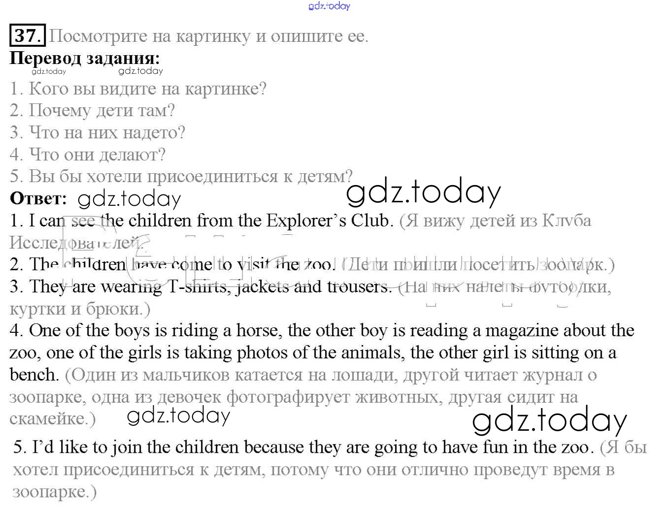 На страницах сайта gdz.today вы найдете учебный и вспомогательный материал, направленный на улучшения знаний школьной программы. ГДЗ - онлайн мир знаний Exercises Unit 2 37 Учебнику по Английскому языку для 6 класса Биболетова, Денисенко Титул, Дрофа Enjoy English 2015, 2019