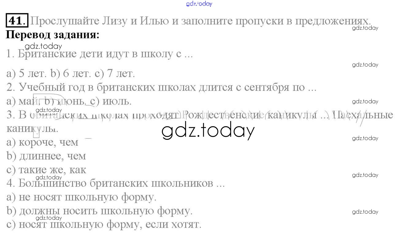 На страницах сайта gdz.today вы найдете учебный и вспомогательный материал, направленный на улучшения знаний школьной программы. ГДЗ - онлайн мир знаний Exercises Unit 2 41 Учебнику по Английскому языку для 6 класса Биболетова, Денисенко Титул, Дрофа Enjoy English 2015, 2019