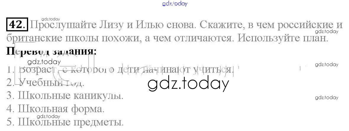 На страницах сайта gdz.today вы найдете учебный и вспомогательный материал, направленный на улучшения знаний школьной программы. ГДЗ - онлайн мир знаний Exercises Unit 2 42 Учебнику по Английскому языку для 6 класса Биболетова, Денисенко Титул, Дрофа Enjoy English 2015, 2019