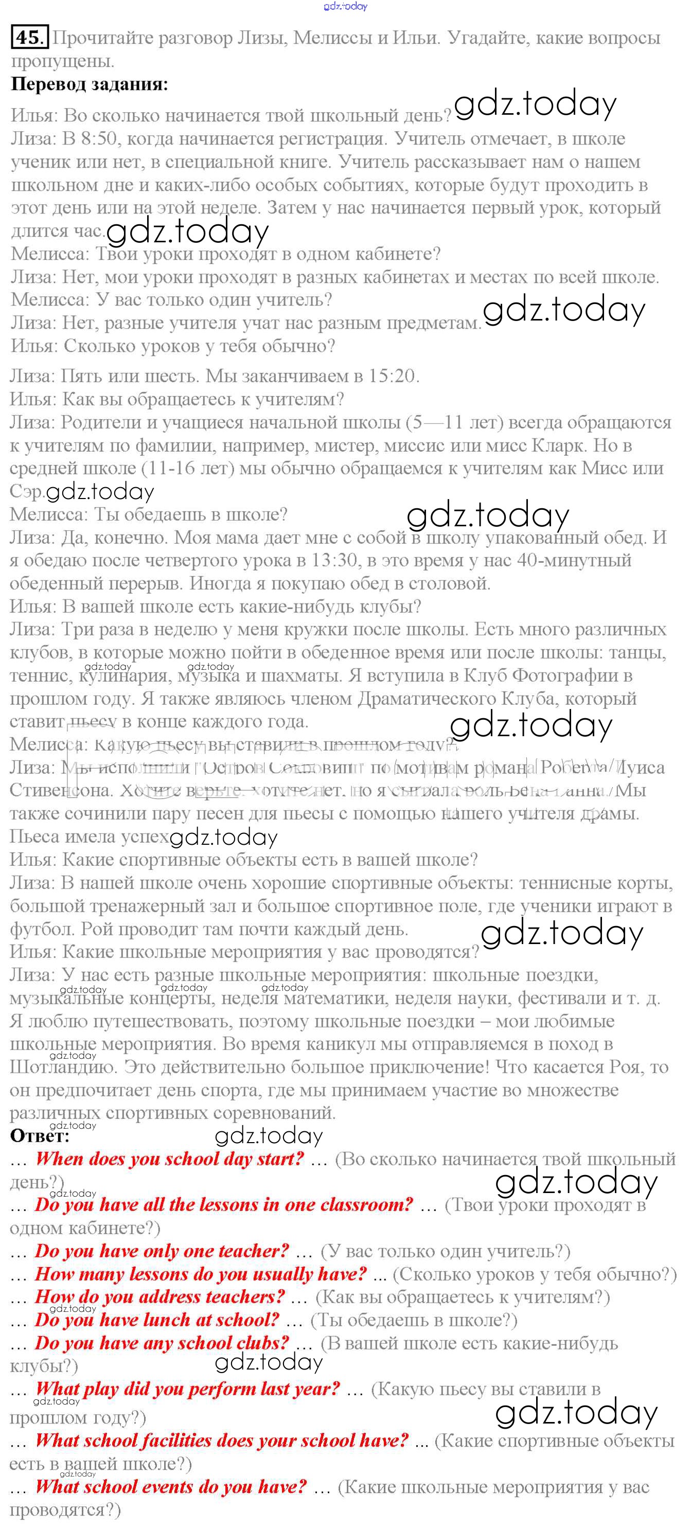 На страницах сайта gdz.today вы найдете учебный и вспомогательный материал, направленный на улучшения знаний школьной программы. ГДЗ - онлайн мир знаний Exercises Unit 2 45 Учебнику по Английскому языку для 6 класса Биболетова, Денисенко Титул, Дрофа Enjoy English 2015, 2019