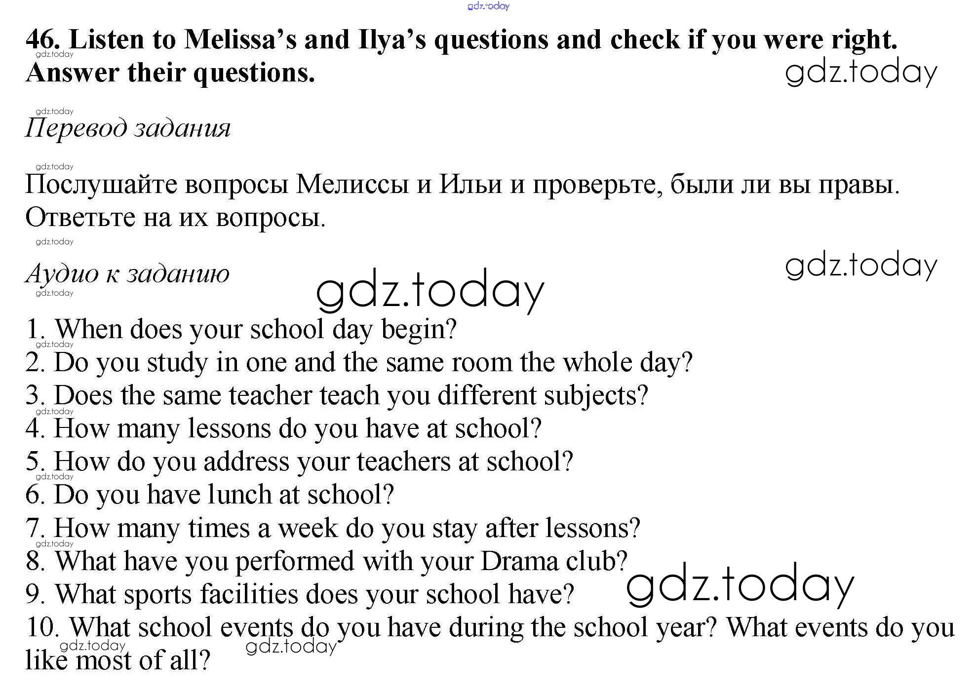 На страницах сайта gdz.today вы найдете учебный и вспомогательный материал, направленный на улучшения знаний школьной программы. ГДЗ - онлайн мир знаний Exercises Unit 2 46 Учебнику по Английскому языку для 6 класса Биболетова, Денисенко Титул, Дрофа Enjoy English 2015, 2019