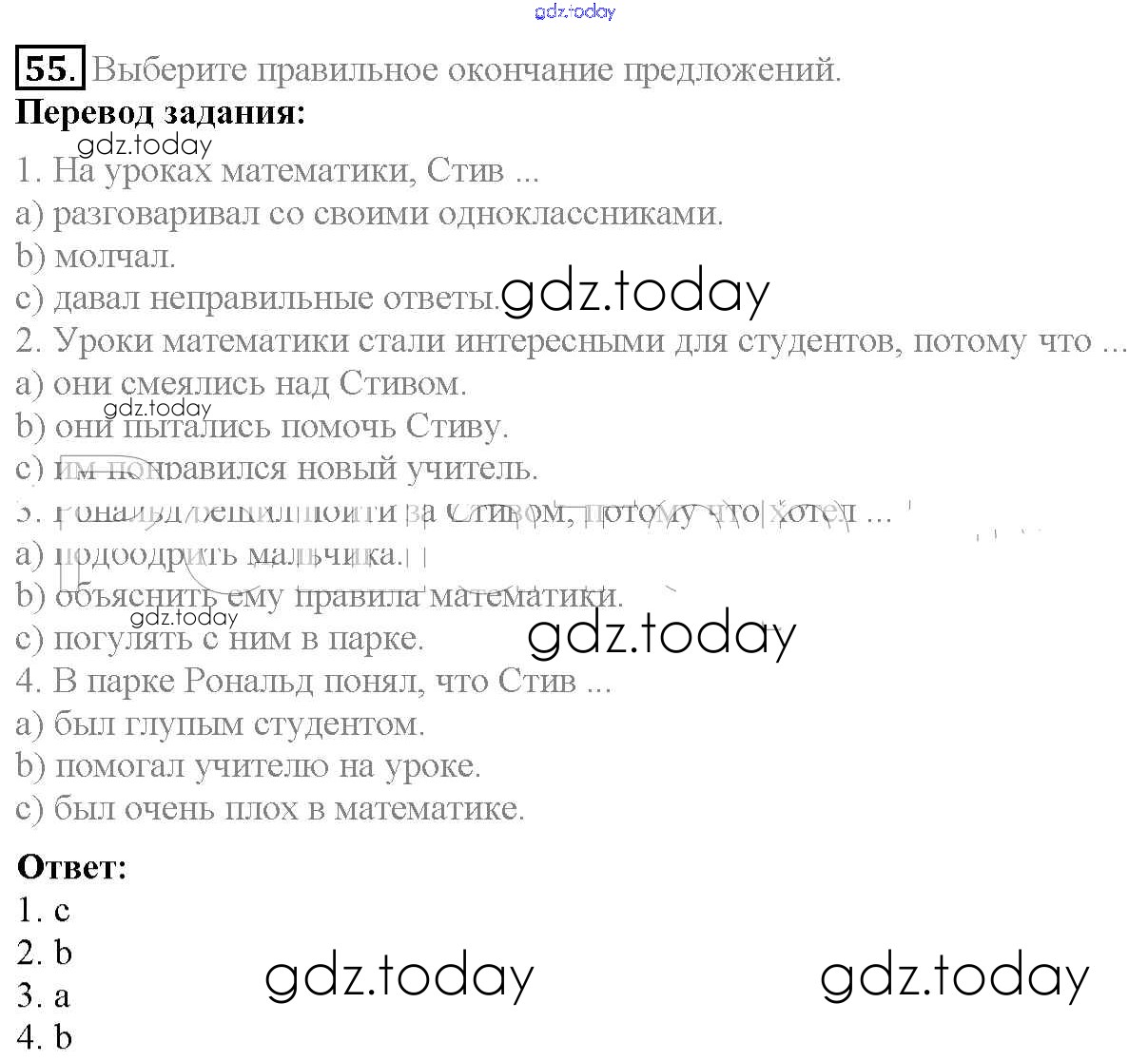 На страницах сайта gdz.today вы найдете учебный и вспомогательный материал, направленный на улучшения знаний школьной программы. ГДЗ - онлайн мир знаний Exercises Unit 2 55 Учебнику по Английскому языку для 6 класса Биболетова, Денисенко Титул, Дрофа Enjoy English 2015, 2019