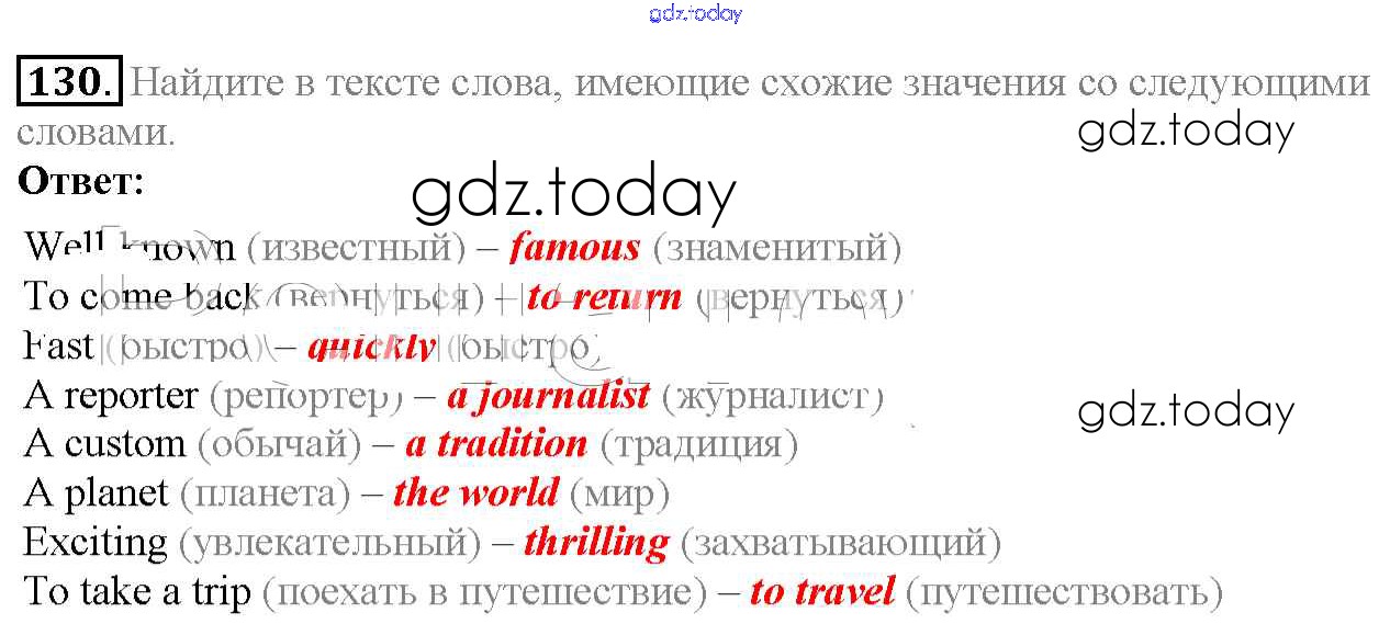 На страницах сайта gdz.today вы найдете учебный и вспомогательный материал, направленный на улучшения знаний школьной программы. ГДЗ - онлайн мир знаний Exercises Unit 3 130 Учебнику по Английскому языку для 6 класса Биболетова, Денисенко Титул, Дрофа Enjoy English 2015, 2019