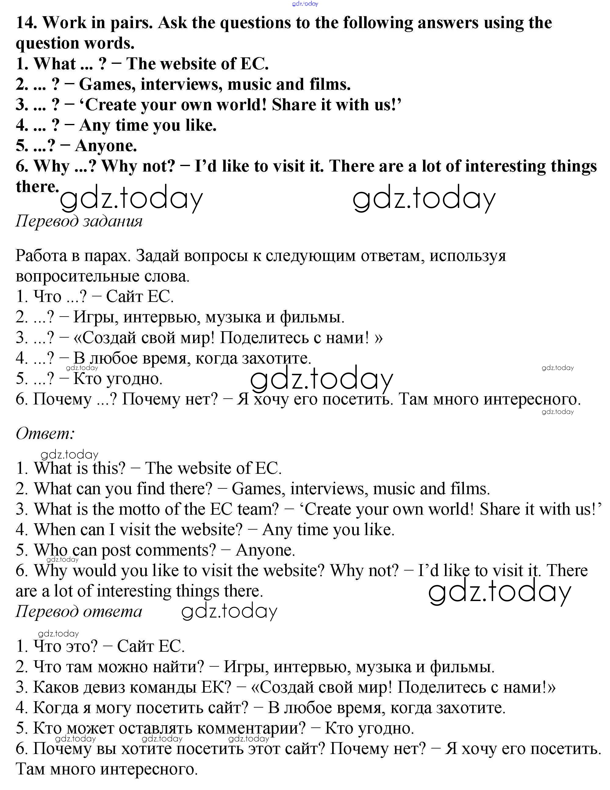 На страницах сайта gdz.today вы найдете учебный и вспомогательный материал, направленный на улучшения знаний школьной программы. ГДЗ - онлайн мир знаний Exercises Unit 3 14 Учебнику по Английскому языку для 6 класса Биболетова, Денисенко Титул, Дрофа Enjoy English 2015, 2019