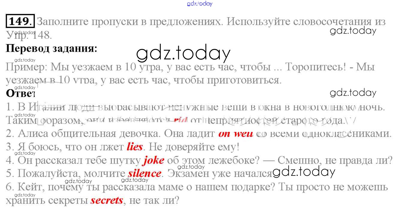 На страницах сайта gdz.today вы найдете учебный и вспомогательный материал, направленный на улучшения знаний школьной программы. ГДЗ - онлайн мир знаний Exercises Unit 3 149 Учебнику по Английскому языку для 6 класса Биболетова, Денисенко Титул, Дрофа Enjoy English 2015, 2019