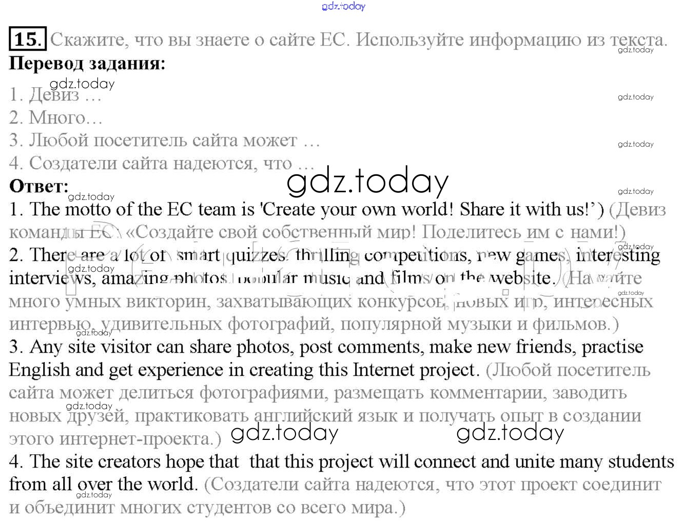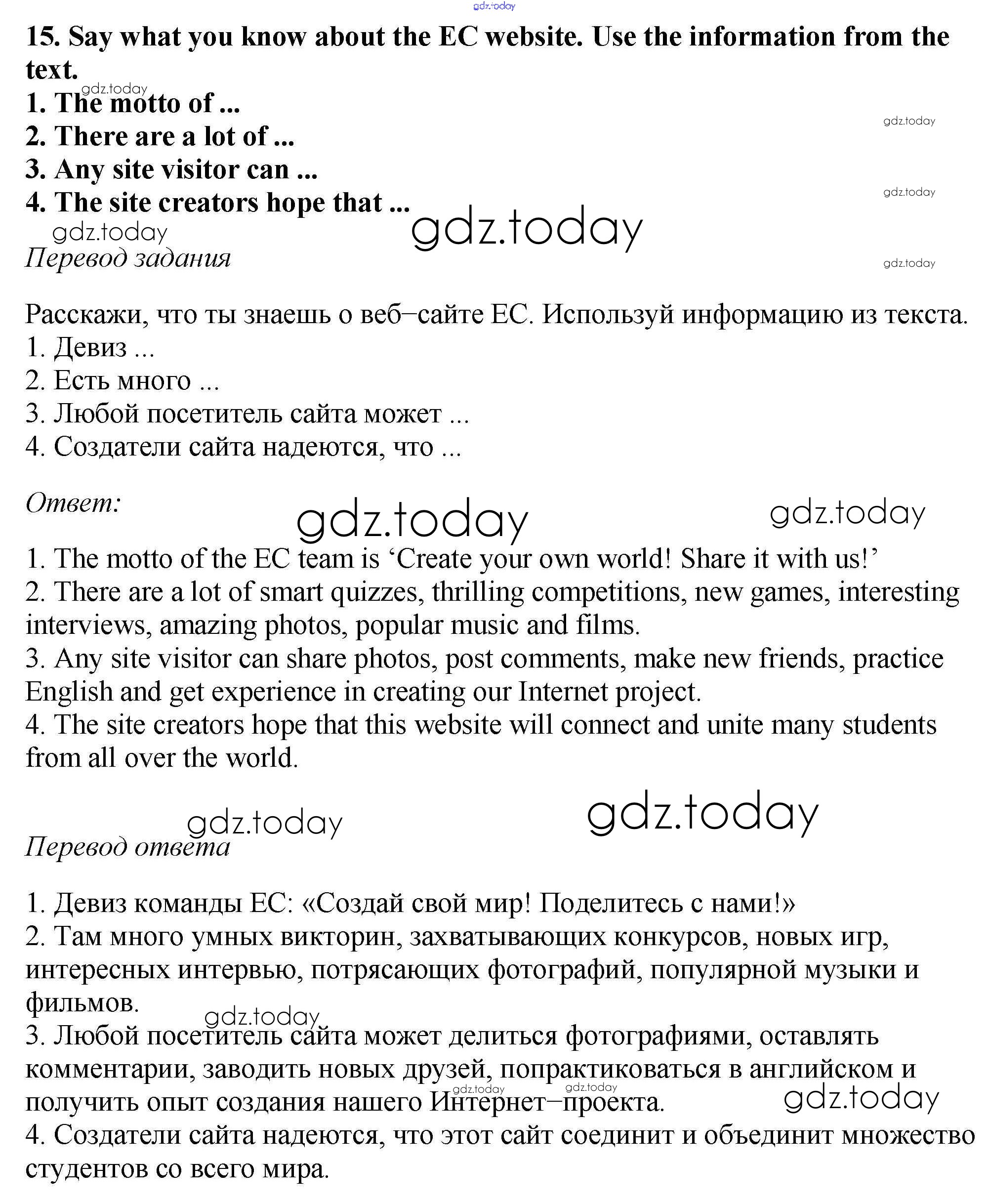 На страницах сайта gdz.today вы найдете учебный и вспомогательный материал, направленный на улучшения знаний школьной программы. ГДЗ - онлайн мир знаний Exercises Unit 3 15 Учебнику по Английскому языку для 6 класса Биболетова, Денисенко Титул, Дрофа Enjoy English 2015, 2019