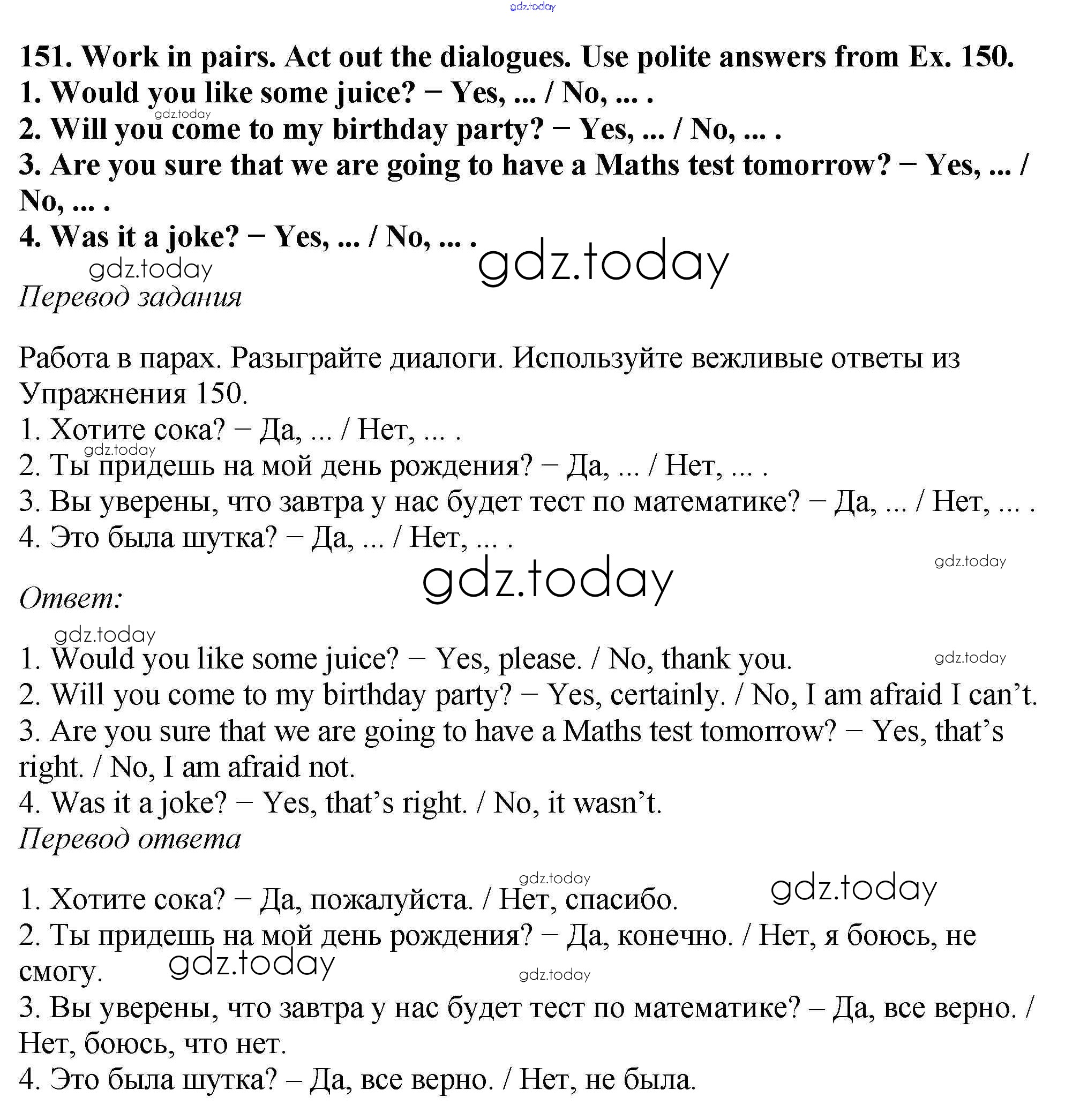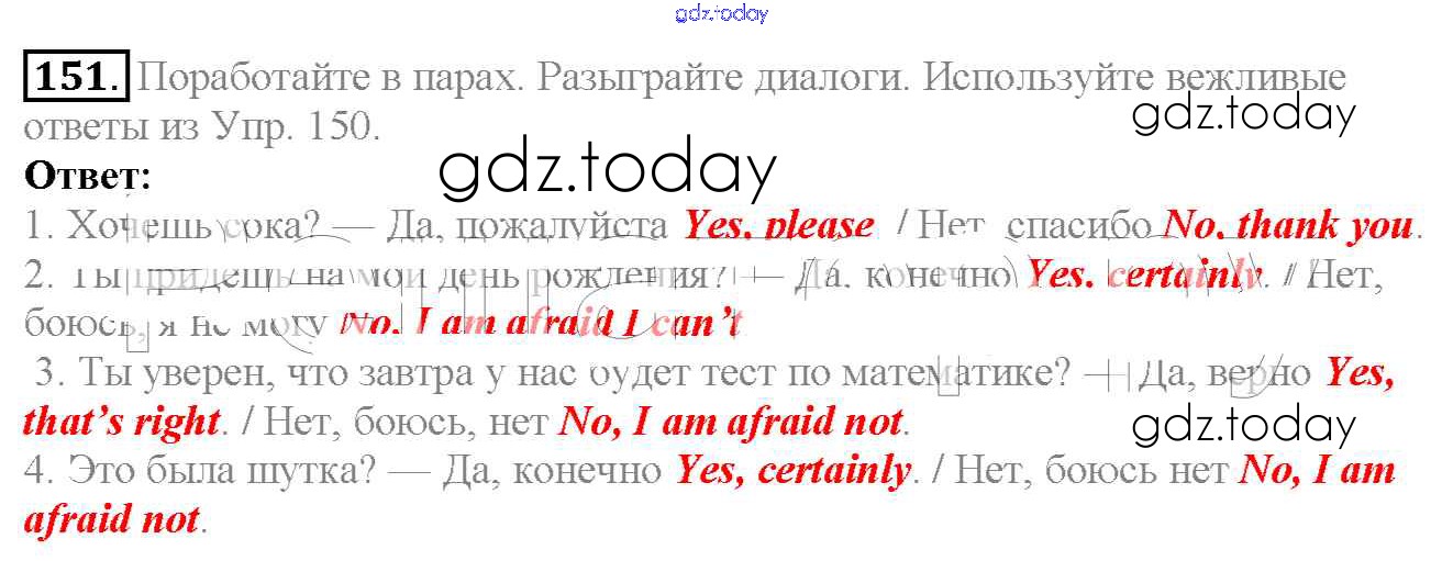 На страницах сайта gdz.today вы найдете учебный и вспомогательный материал, направленный на улучшения знаний школьной программы. ГДЗ - онлайн мир знаний Exercises Unit 3 151 Учебнику по Английскому языку для 6 класса Биболетова, Денисенко Титул, Дрофа Enjoy English 2015, 2019