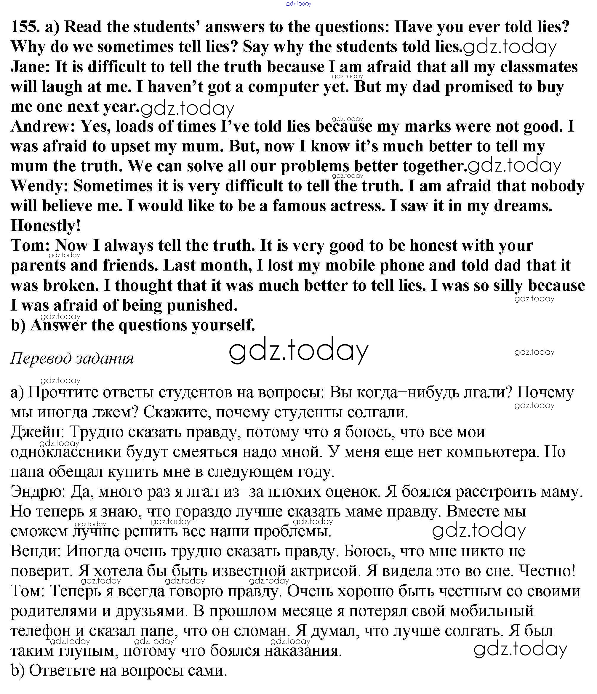 На страницах сайта gdz.today вы найдете учебный и вспомогательный материал, направленный на улучшения знаний школьной программы. ГДЗ - онлайн мир знаний Exercises Unit 3 155 Учебнику по Английскому языку для 6 класса Биболетова, Денисенко Титул, Дрофа Enjoy English 2015, 2019
