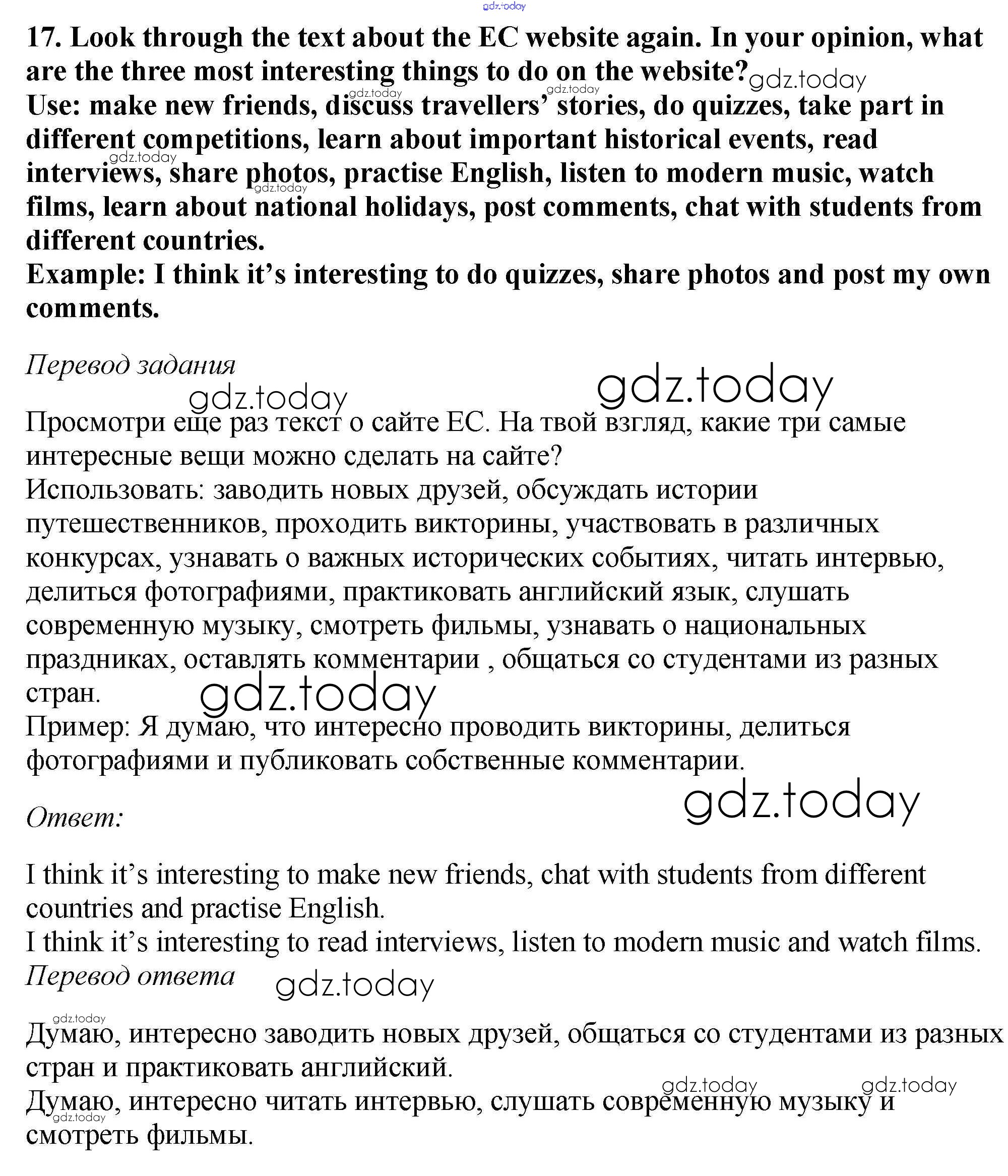 На страницах сайта gdz.today вы найдете учебный и вспомогательный материал, направленный на улучшения знаний школьной программы. ГДЗ - онлайн мир знаний Exercises Unit 3 17 Учебнику по Английскому языку для 6 класса Биболетова, Денисенко Титул, Дрофа Enjoy English 2015, 2019