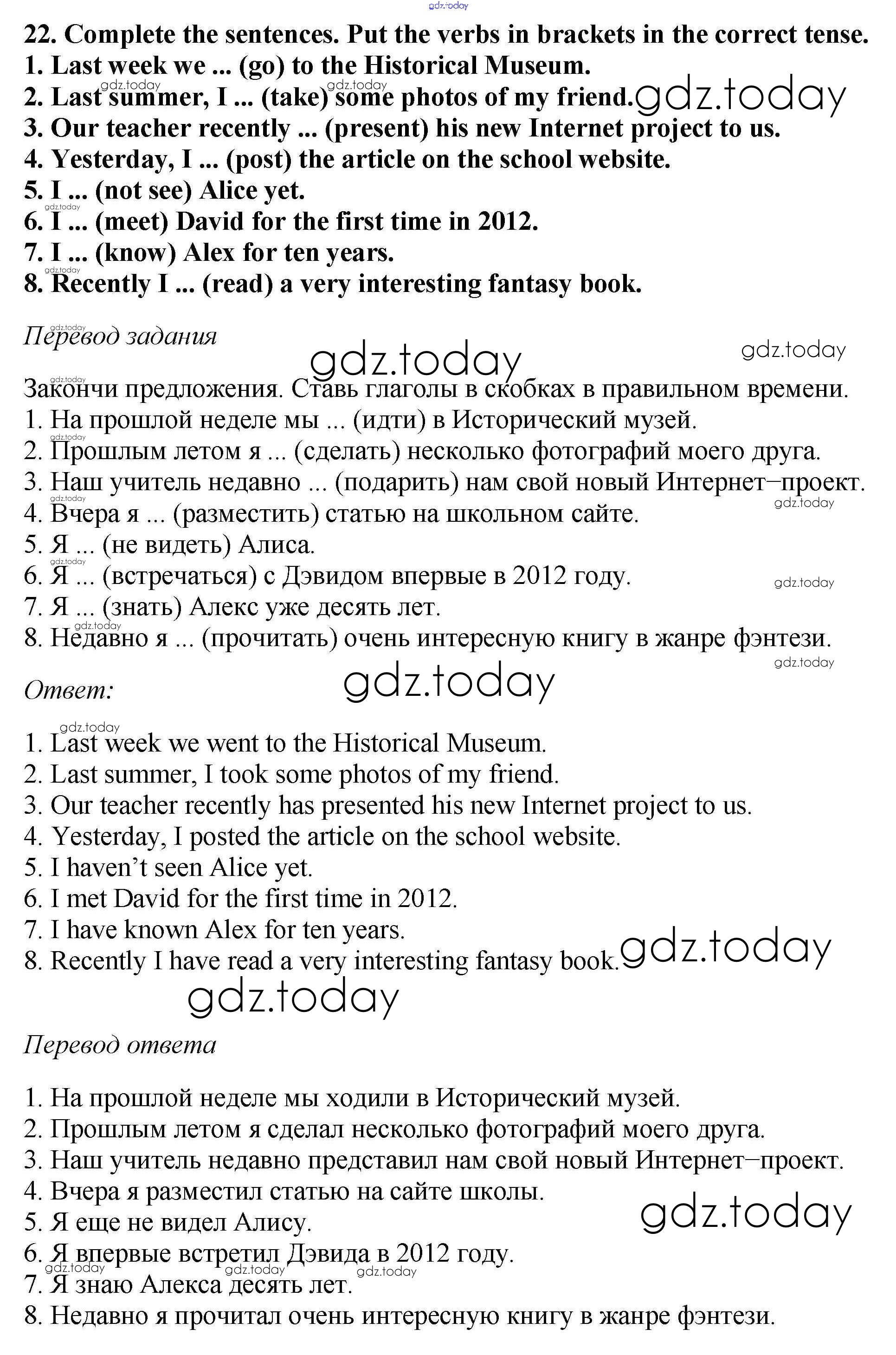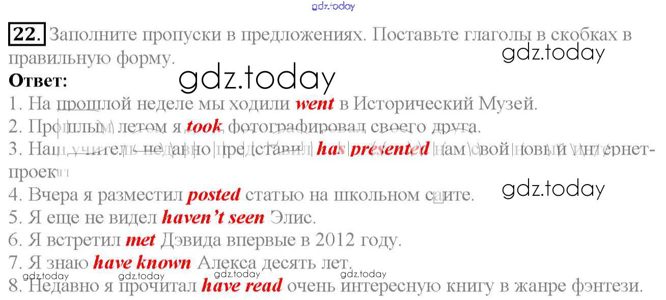 На страницах сайта gdz.today вы найдете учебный и вспомогательный материал, направленный на улучшения знаний школьной программы. ГДЗ - онлайн мир знаний Exercises Unit 3 22 Учебнику по Английскому языку для 6 класса Биболетова, Денисенко Титул, Дрофа Enjoy English 2015, 2019