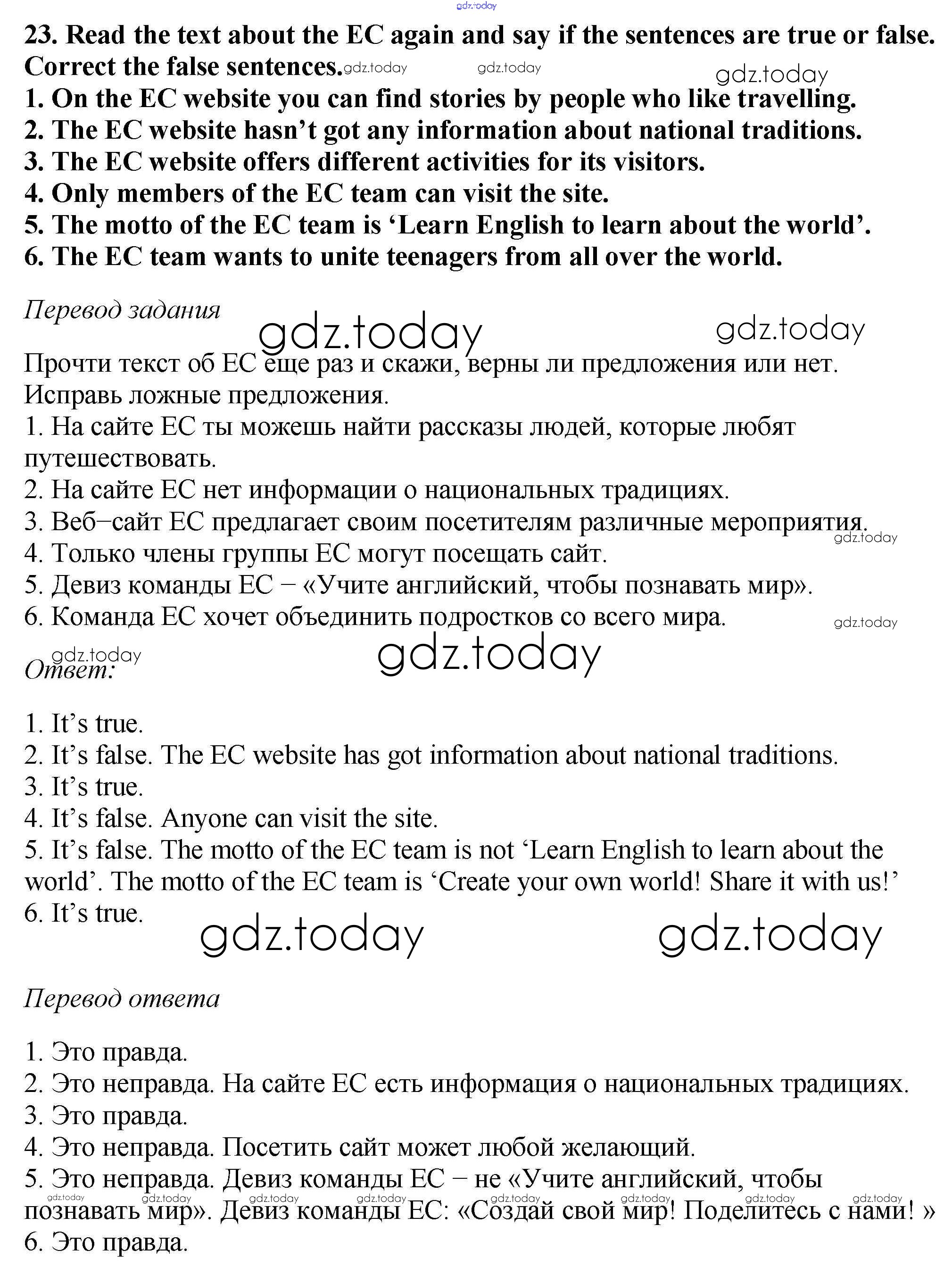 На страницах сайта gdz.today вы найдете учебный и вспомогательный материал, направленный на улучшения знаний школьной программы. ГДЗ - онлайн мир знаний Exercises Unit 3 23 Учебнику по Английскому языку для 6 класса Биболетова, Денисенко Титул, Дрофа Enjoy English 2015, 2019