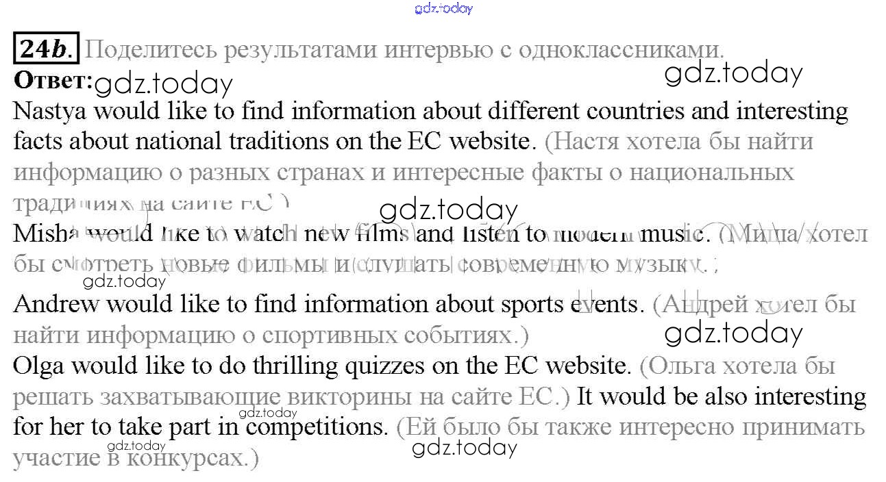 На страницах сайта gdz.today вы найдете учебный и вспомогательный материал, направленный на улучшения знаний школьной программы. ГДЗ - онлайн мир знаний Exercises Unit 3 24 Учебнику по Английскому языку для 6 класса Биболетова, Денисенко Титул, Дрофа Enjoy English 2015, 2019