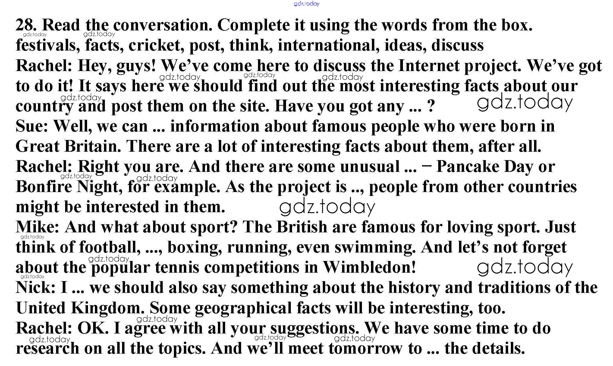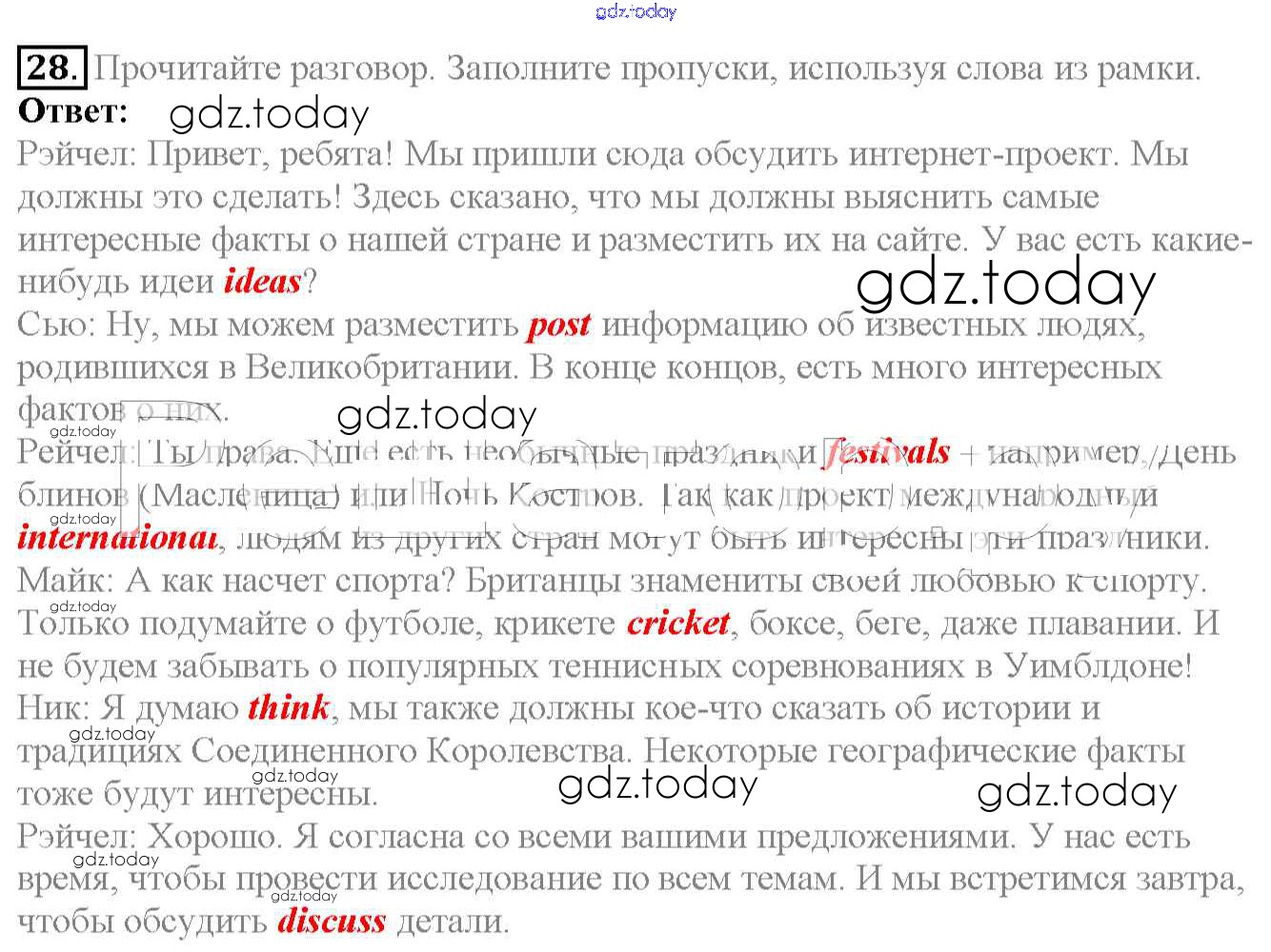 На страницах сайта gdz.today вы найдете учебный и вспомогательный материал, направленный на улучшения знаний школьной программы. ГДЗ - онлайн мир знаний Exercises Unit 3 28 Учебнику по Английскому языку для 6 класса Биболетова, Денисенко Титул, Дрофа Enjoy English 2015, 2019