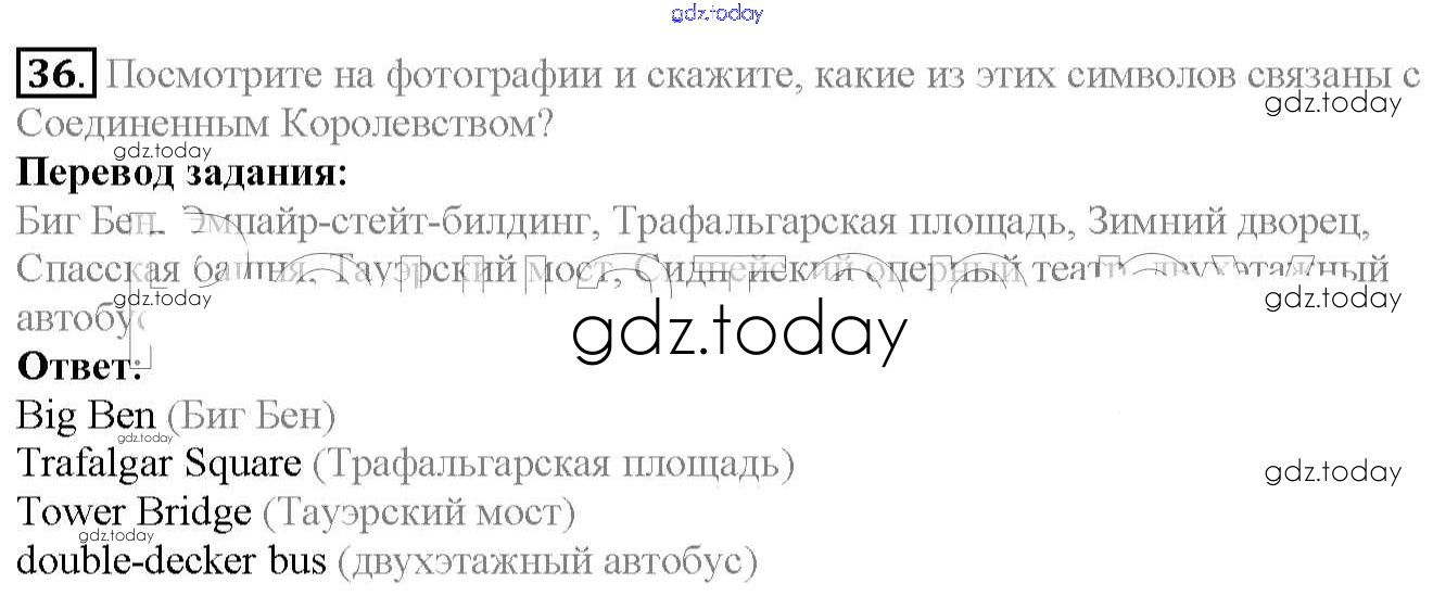 На страницах сайта gdz.today вы найдете учебный и вспомогательный материал, направленный на улучшения знаний школьной программы. ГДЗ - онлайн мир знаний Exercises Unit 3 36 Учебнику по Английскому языку для 6 класса Биболетова, Денисенко Титул, Дрофа Enjoy English 2015, 2019