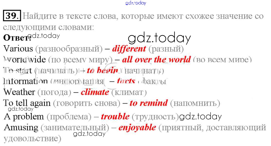 На страницах сайта gdz.today вы найдете учебный и вспомогательный материал, направленный на улучшения знаний школьной программы. ГДЗ - онлайн мир знаний Exercises Unit 3 39 Учебнику по Английскому языку для 6 класса Биболетова, Денисенко Титул, Дрофа Enjoy English 2015, 2019