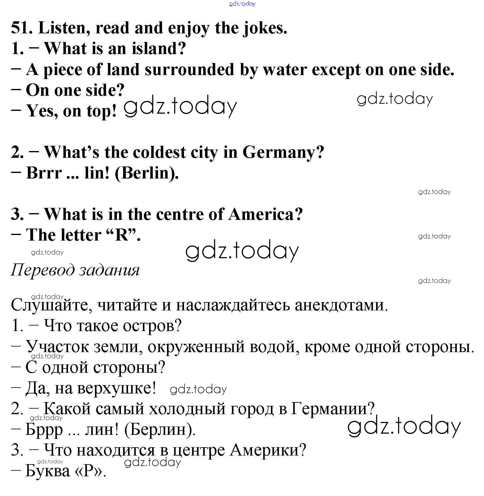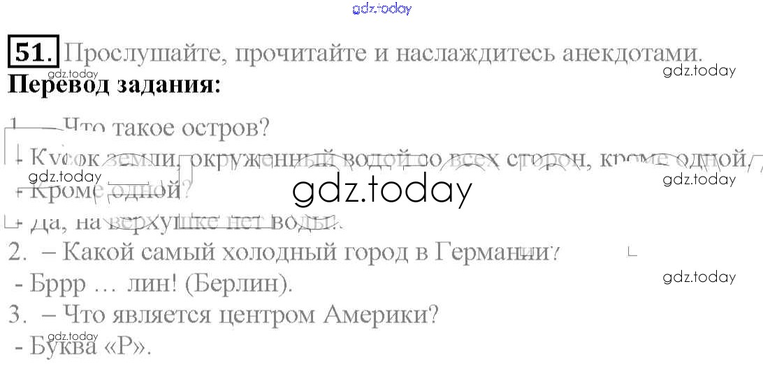 На страницах сайта gdz.today вы найдете учебный и вспомогательный материал, направленный на улучшения знаний школьной программы. ГДЗ - онлайн мир знаний Exercises Unit 3 51 Учебнику по Английскому языку для 6 класса Биболетова, Денисенко Титул, Дрофа Enjoy English 2015, 2019