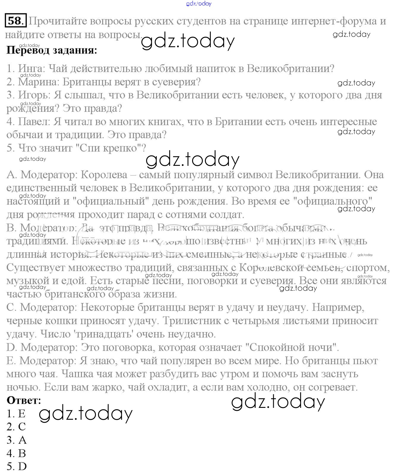 На страницах сайта gdz.today вы найдете учебный и вспомогательный материал, направленный на улучшения знаний школьной программы. ГДЗ - онлайн мир знаний Exercises Unit 3 58 Учебнику по Английскому языку для 6 класса Биболетова, Денисенко Титул, Дрофа Enjoy English 2015, 2019