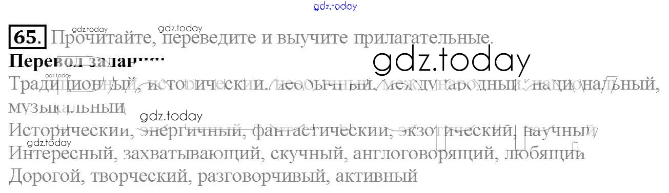 На страницах сайта gdz.today вы найдете учебный и вспомогательный материал, направленный на улучшения знаний школьной программы. ГДЗ - онлайн мир знаний Exercises Unit 3 65 Учебнику по Английскому языку для 6 класса Биболетова, Денисенко Титул, Дрофа Enjoy English 2015, 2019