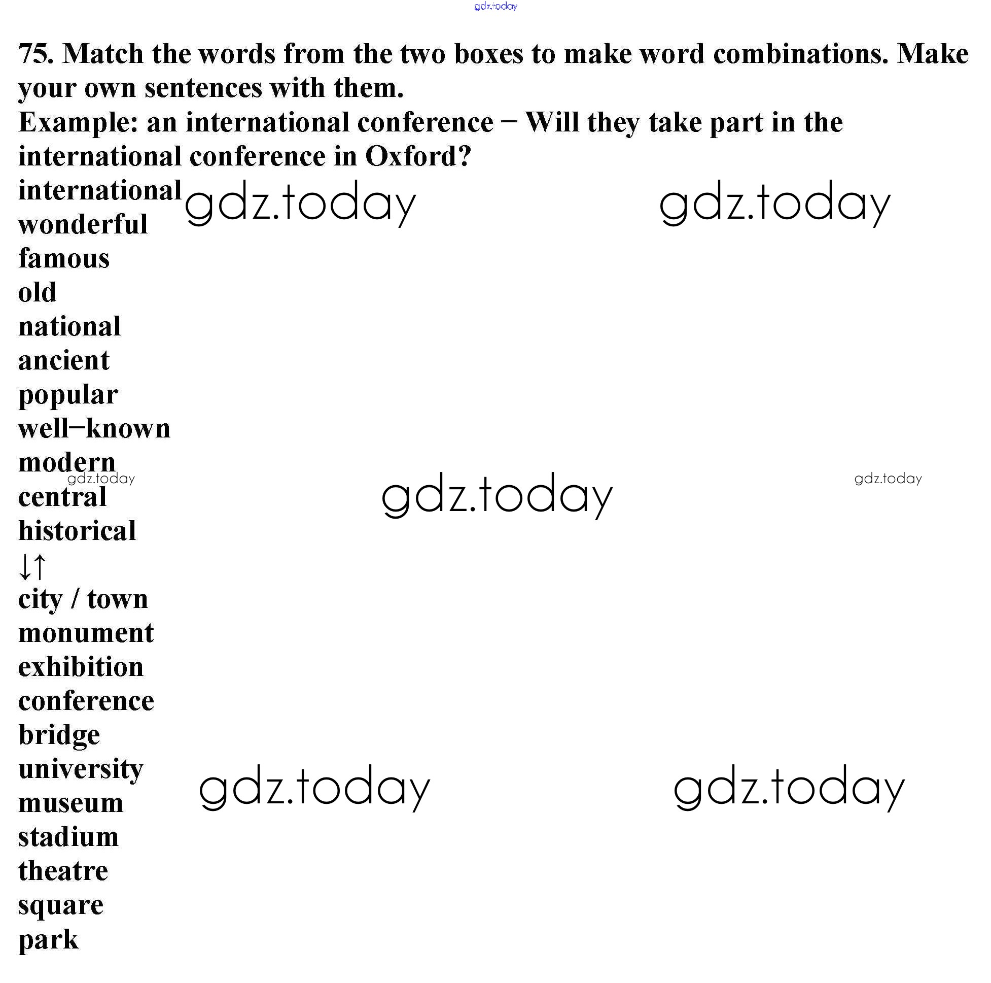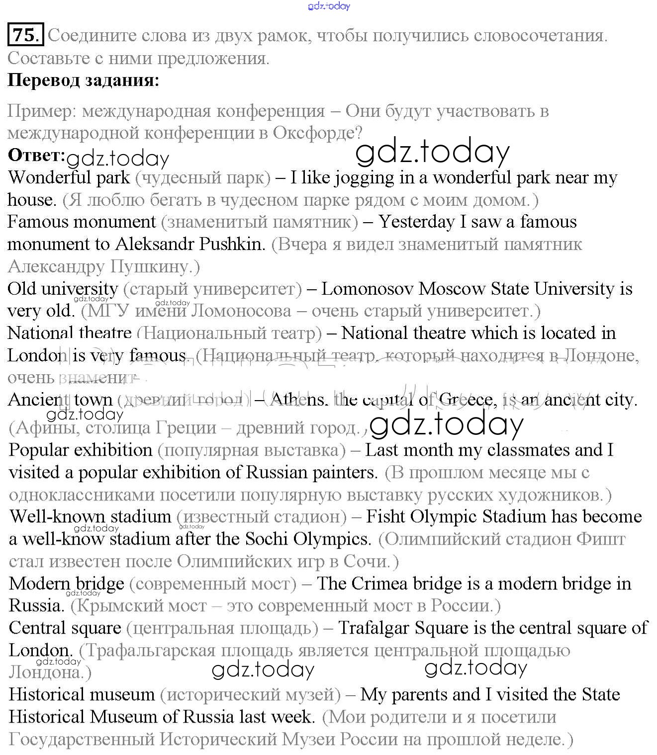 На страницах сайта gdz.today вы найдете учебный и вспомогательный материал, направленный на улучшения знаний школьной программы. ГДЗ - онлайн мир знаний Exercises Unit 3 75 Учебнику по Английскому языку для 6 класса Биболетова, Денисенко Титул, Дрофа Enjoy English 2015, 2019