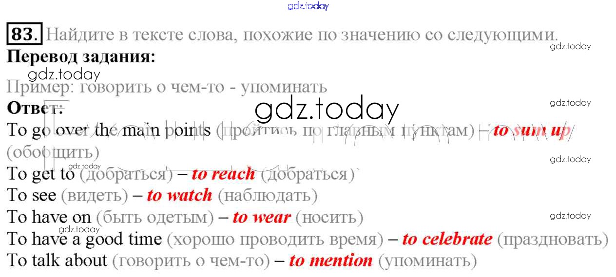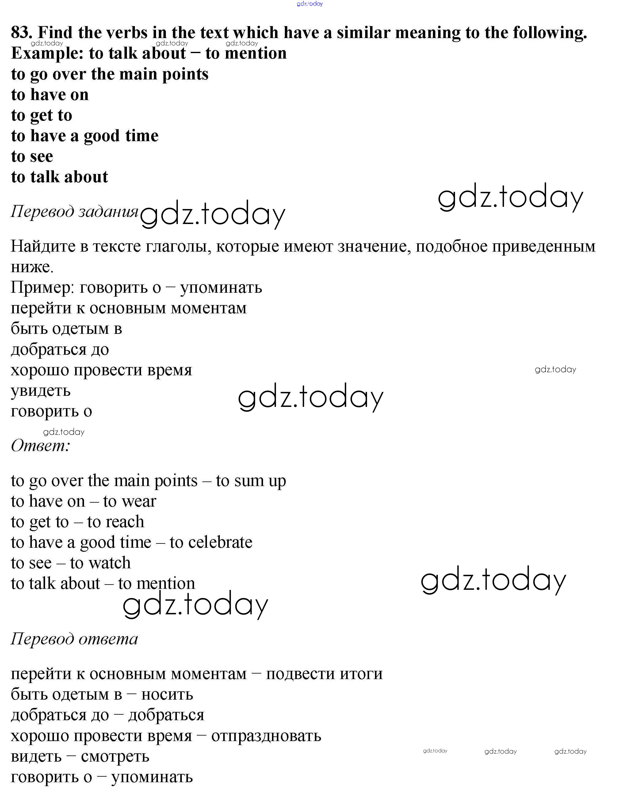 На страницах сайта gdz.today вы найдете учебный и вспомогательный материал, направленный на улучшения знаний школьной программы. ГДЗ - онлайн мир знаний Exercises Unit 3 83 Учебнику по Английскому языку для 6 класса Биболетова, Денисенко Титул, Дрофа Enjoy English 2015, 2019
