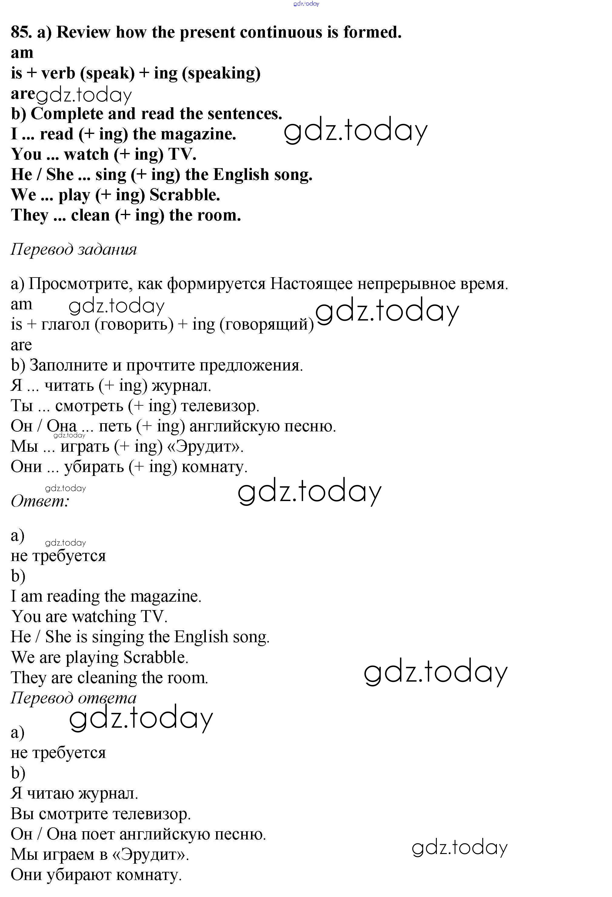 На страницах сайта gdz.today вы найдете учебный и вспомогательный материал, направленный на улучшения знаний школьной программы. ГДЗ - онлайн мир знаний Exercises Unit 3 85 Учебнику по Английскому языку для 6 класса Биболетова, Денисенко Титул, Дрофа Enjoy English 2015, 2019
