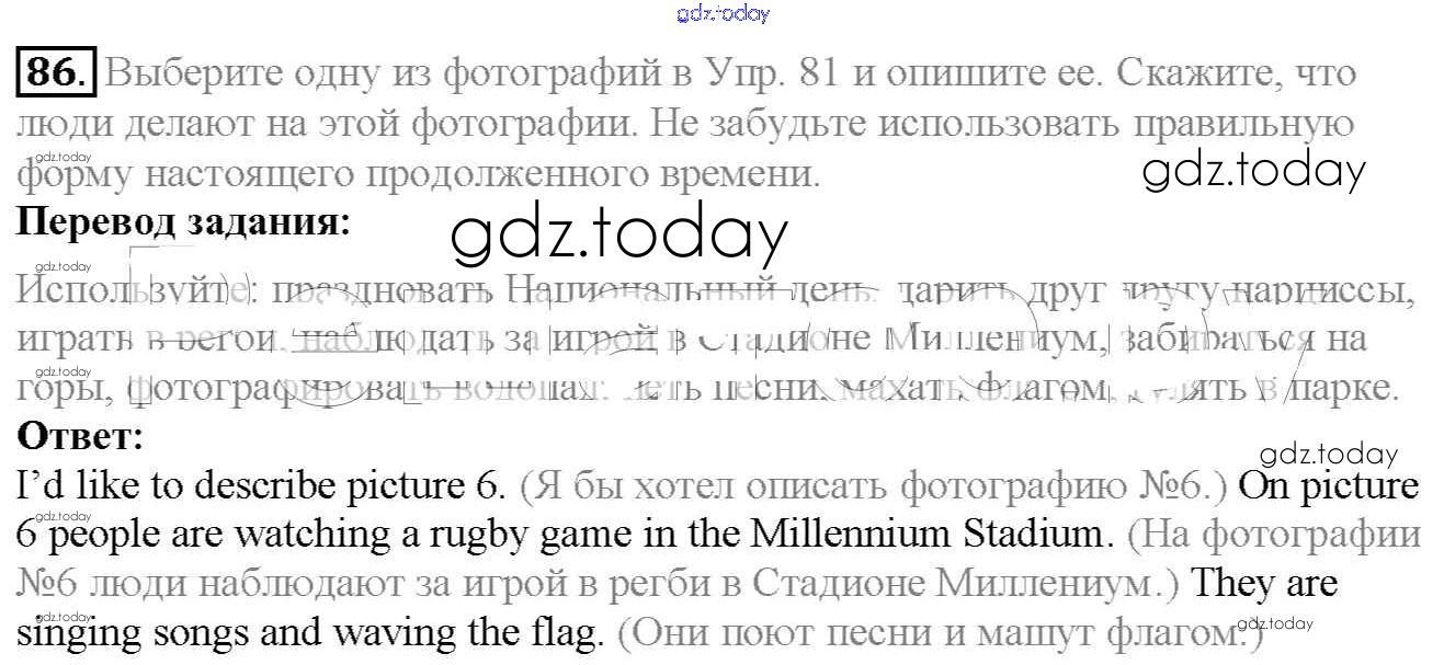 На страницах сайта gdz.today вы найдете учебный и вспомогательный материал, направленный на улучшения знаний школьной программы. ГДЗ - онлайн мир знаний Exercises Unit 3 86 Учебнику по Английскому языку для 6 класса Биболетова, Денисенко Титул, Дрофа Enjoy English 2015, 2019