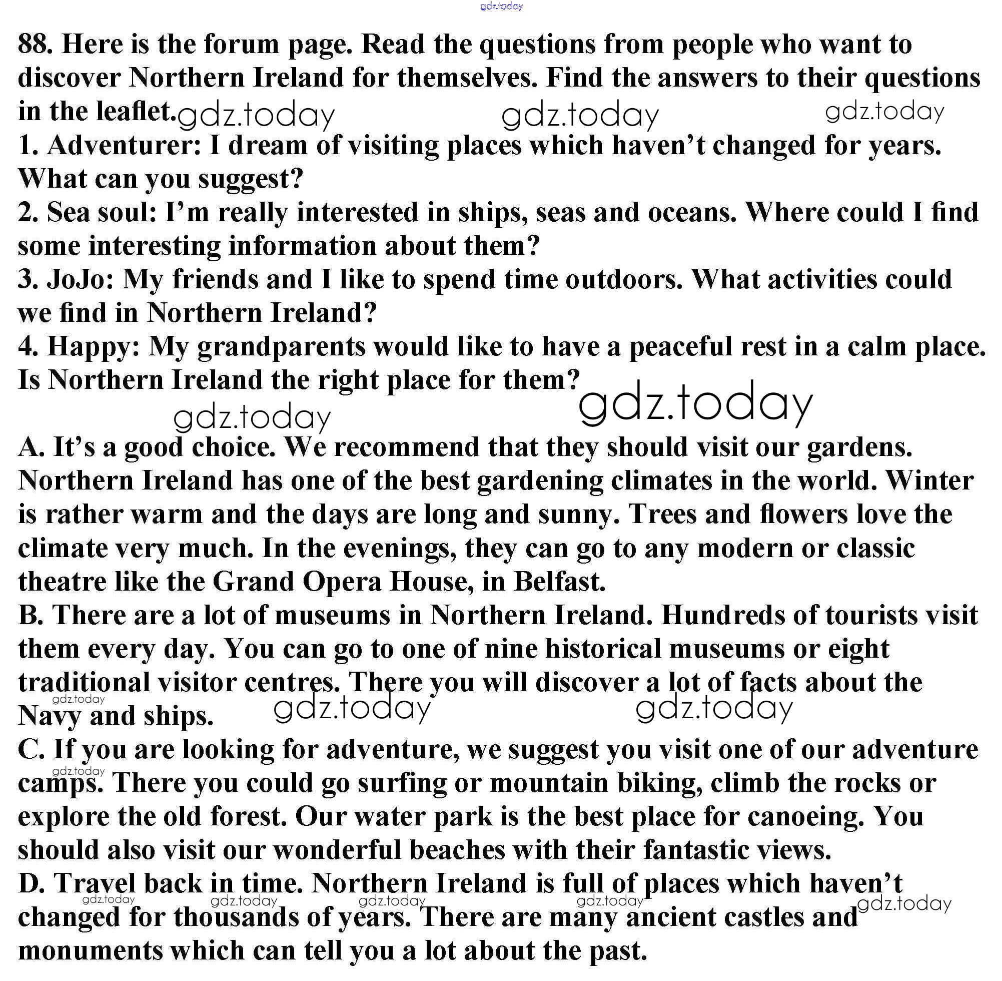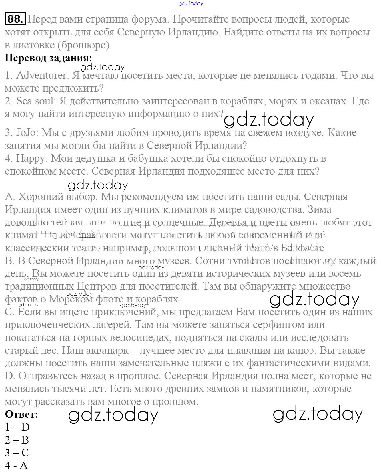 На страницах сайта gdz.today вы найдете учебный и вспомогательный материал, направленный на улучшения знаний школьной программы. ГДЗ - онлайн мир знаний Exercises Unit 3 88 Учебнику по Английскому языку для 6 класса Биболетова, Денисенко Титул, Дрофа Enjoy English 2015, 2019